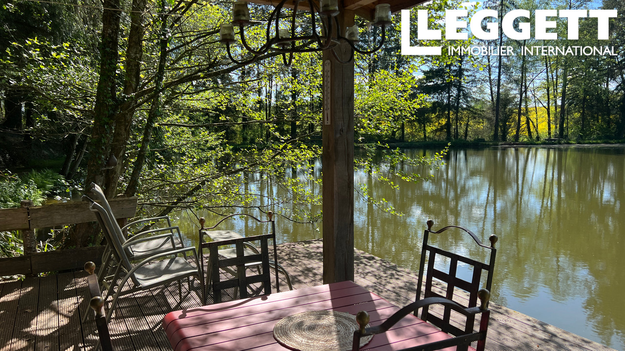 A20879SGE24 - Située au coeur du Parc Naturel Régional du Nord de la Dordogne, près du village de Saint-Priest-les-Fougères, la propriété se compose de 3 étangs de pêche empoissonnés, d'une cabane de pêcheur de luxe.
