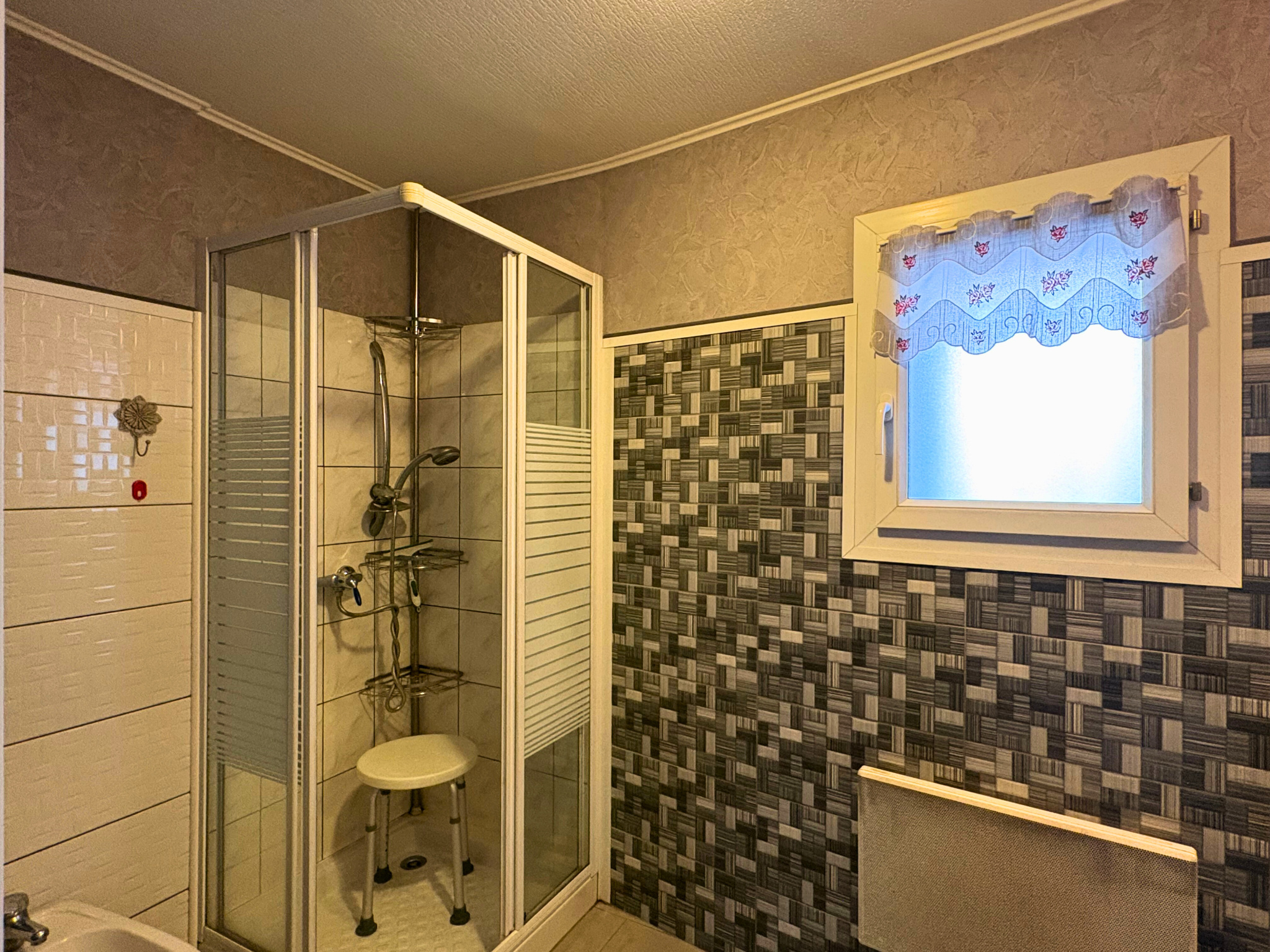 Puis un couloir de 7,84 m2 dessert une chambre de 11,50 m2, une salle d'eau de 4,34 m2 (composée d'un meuble vasque, une douche et un bidet), un séjour lumineux de 26,24 m2 doté de plusieurs rangements.