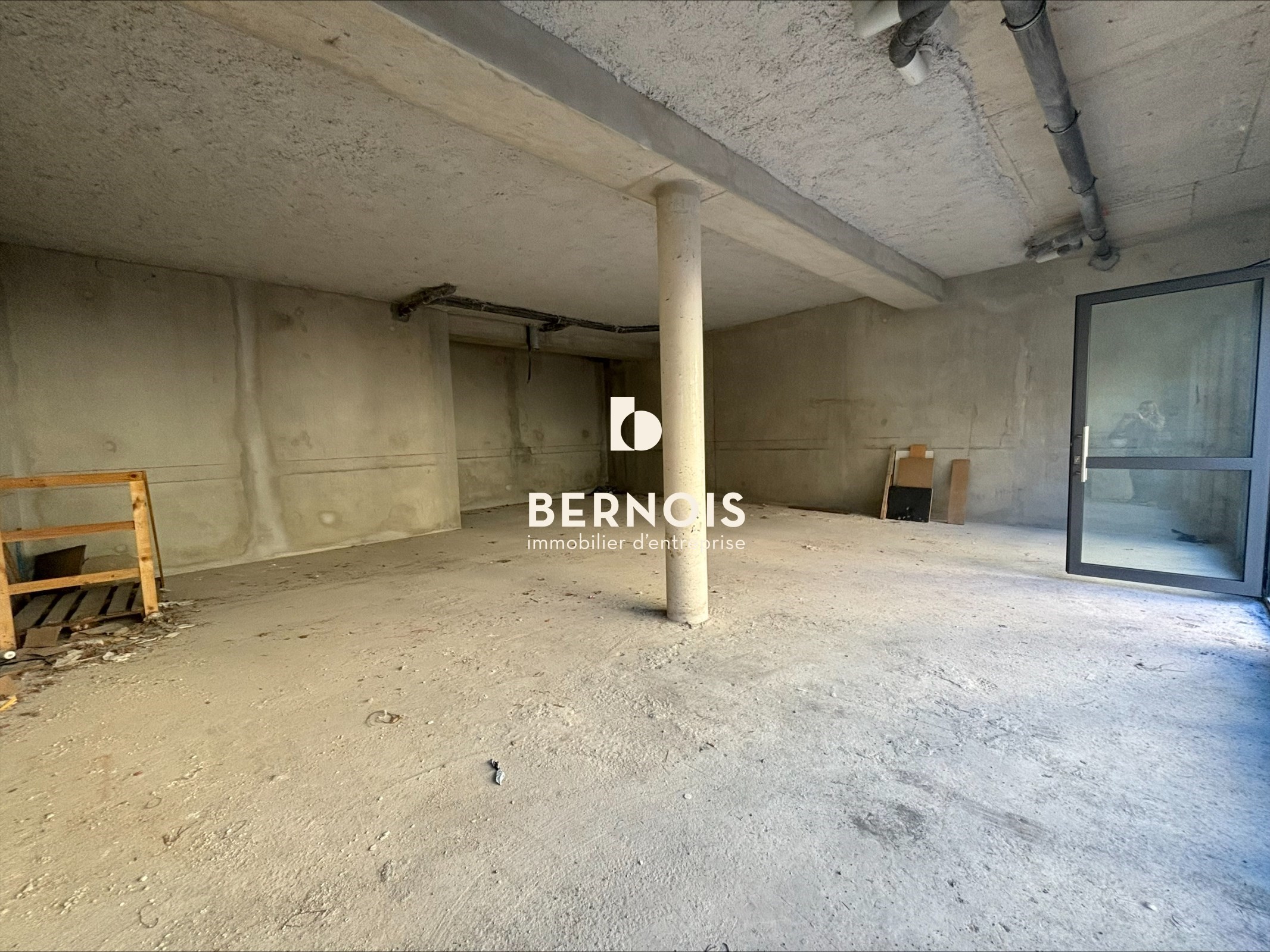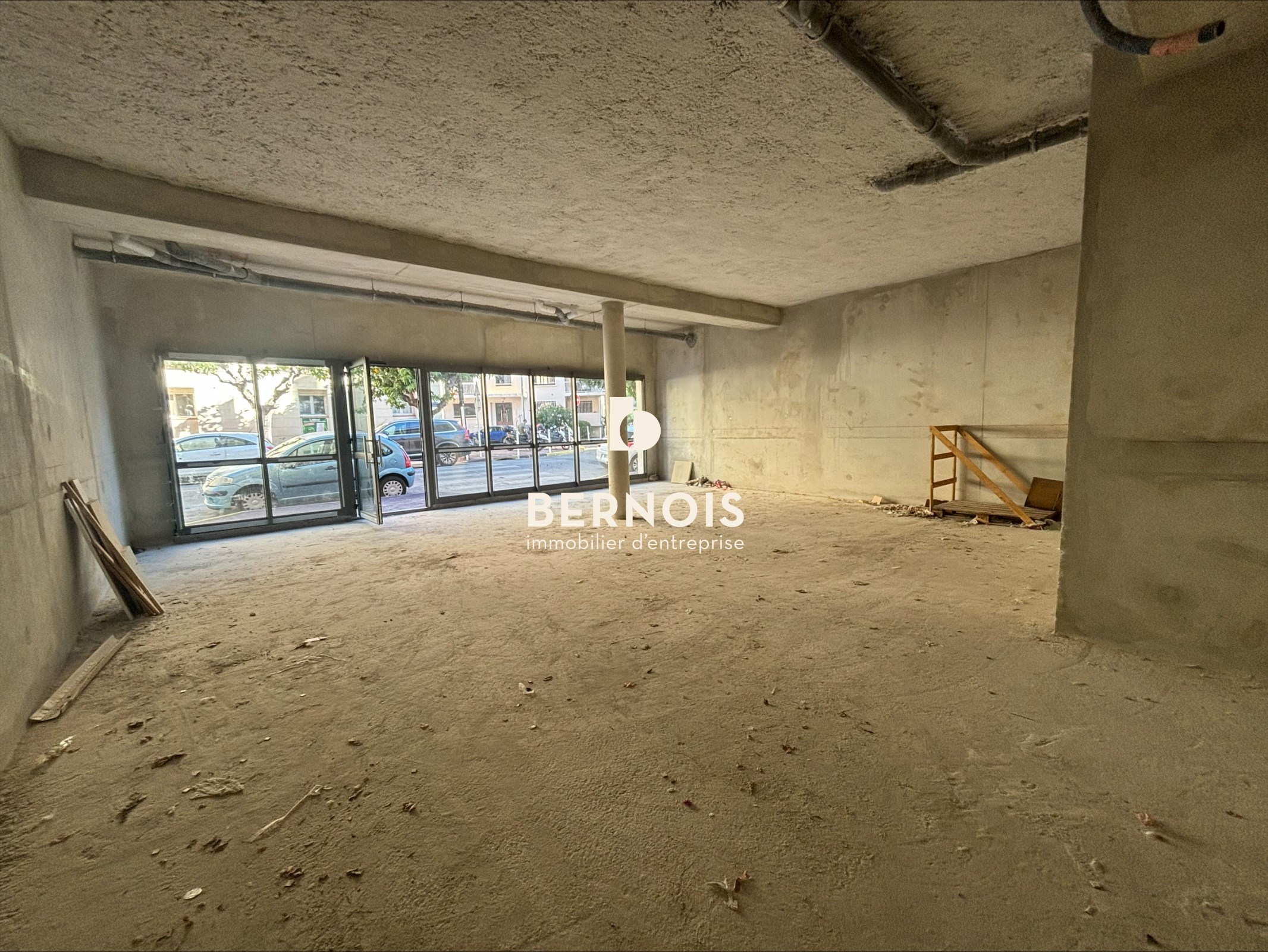 Au rez-de-chaussée d'un immeuble d'habitation, local commercial neuf, livré brut, vitrine posée, fluides en attente.