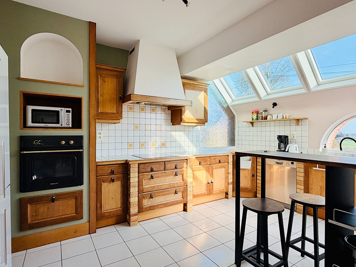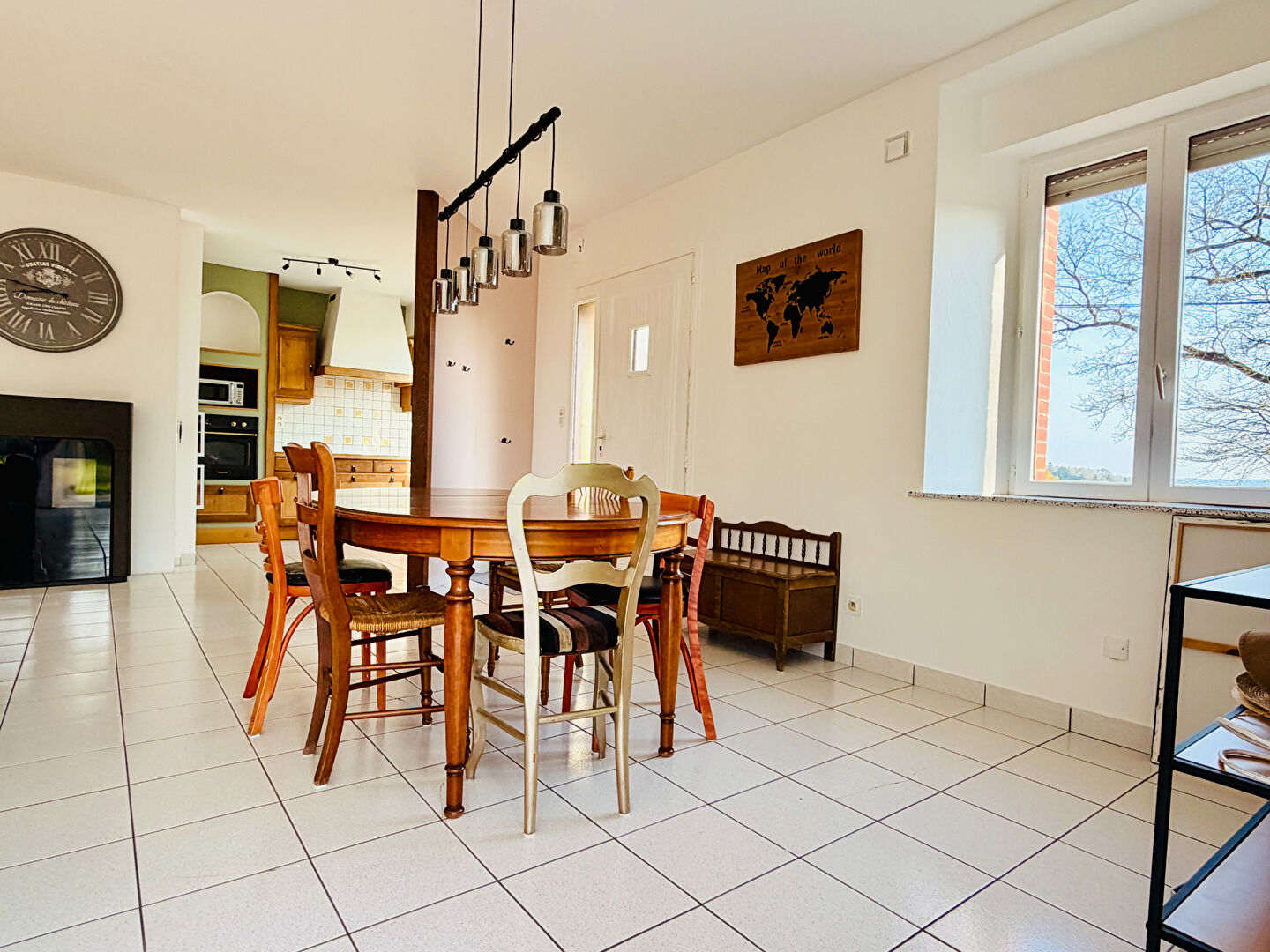 La pièce de vie, spacieuse et baignée de lumière avec ses 58 m², offre un espace convivial et chaleureux. La cuisine aménagée et équipée se distingue par son architecture originale qui participe pleinement au caractère unique de la maison. Une partie des huisseries récemment remplacées améliorent le confort thermique et renforcent la qualité globale du bien.