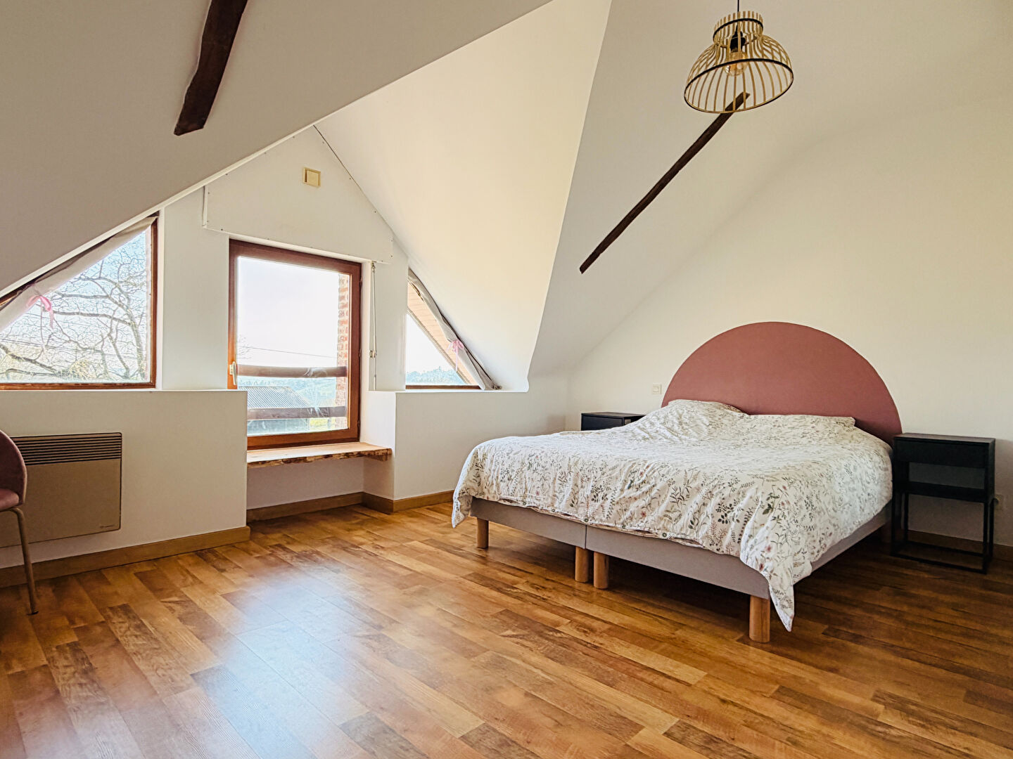 La maison propose une vie de plain-pied avec une chambre de 13 m² au rez-de-chaussée, tandis que l'étage accueille 3 autres chambres, dont une belle pièce de 20 m².