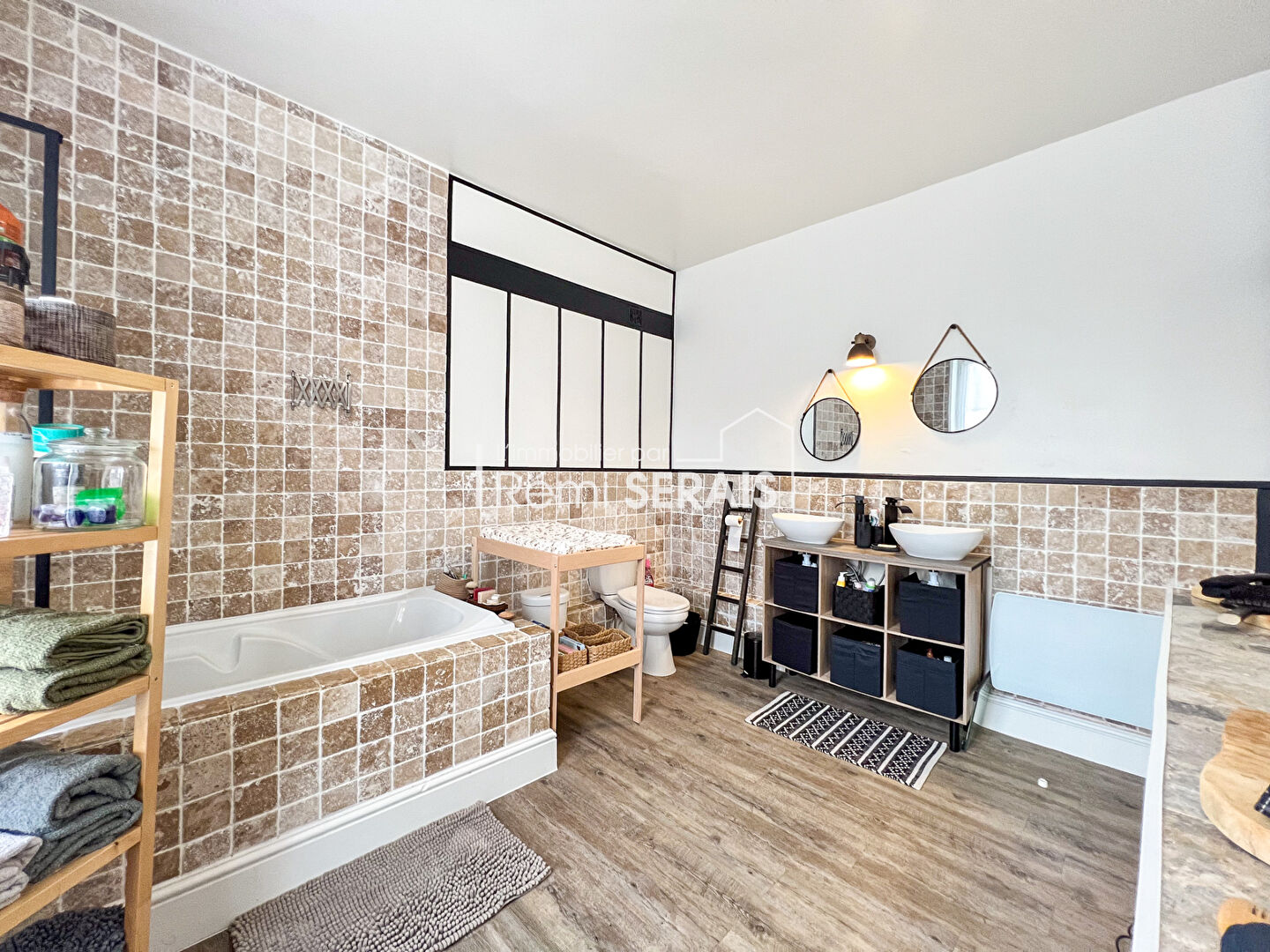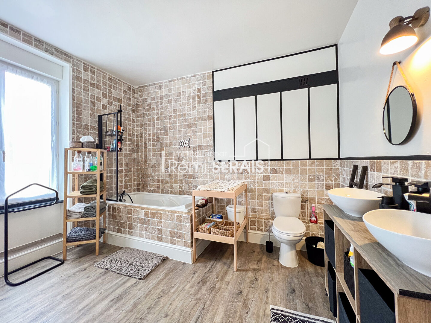 Au 1er niveau, un grand salon et une grande salle de bains avec wc