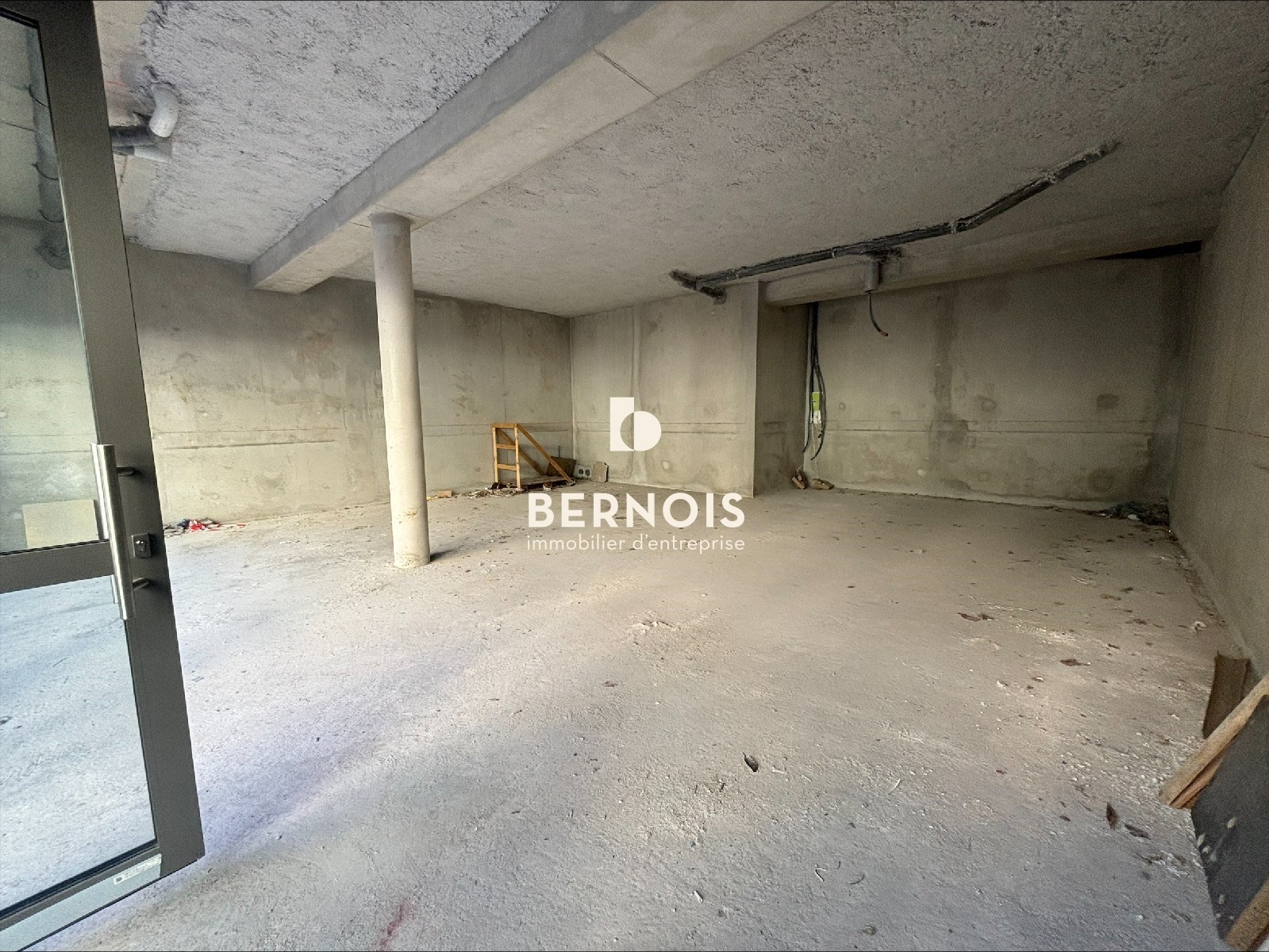 Au rez-de-chaussée d'un immeuble d'habitation, local commercial neuf, livré brut, vitrine posée, fluides en attente.