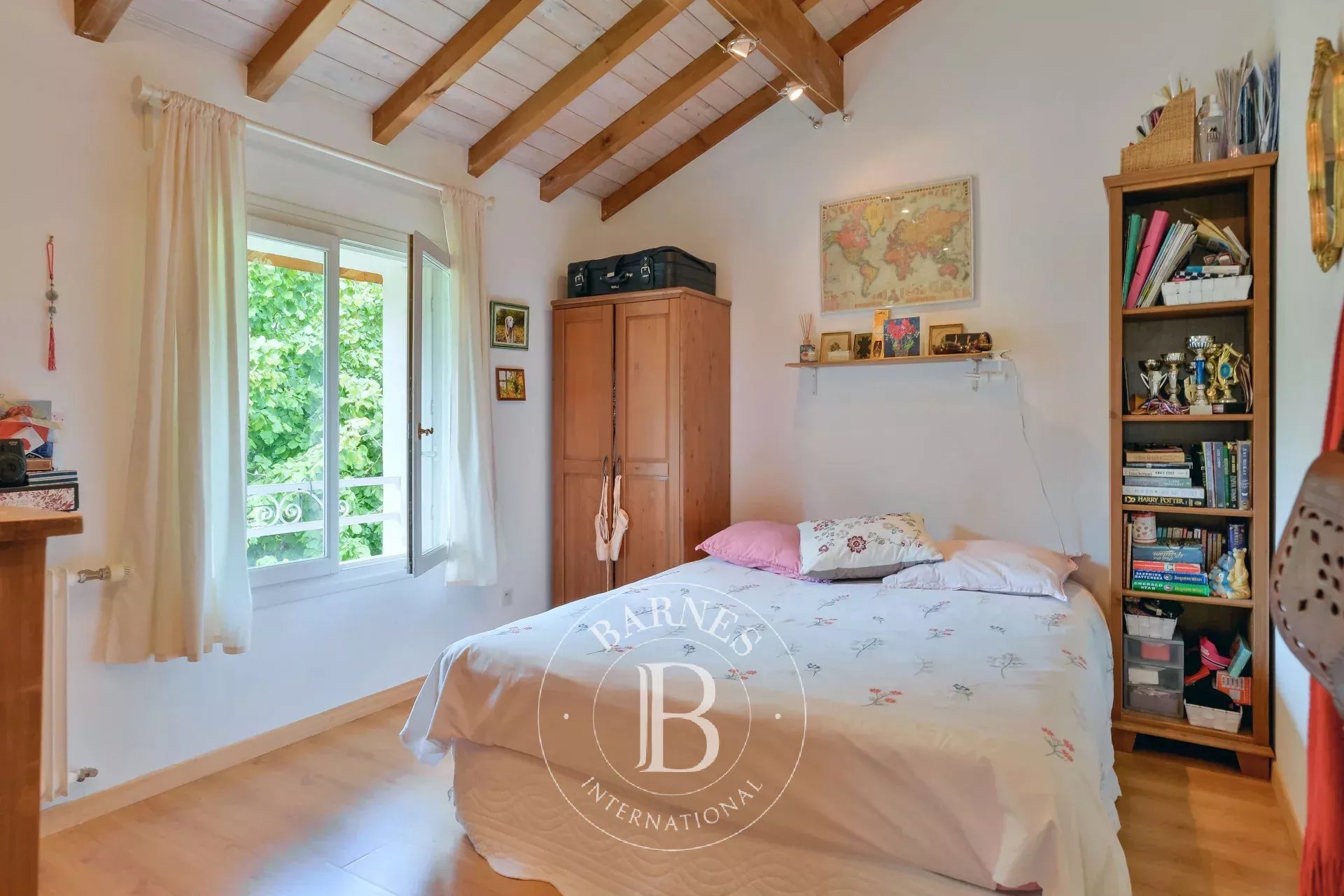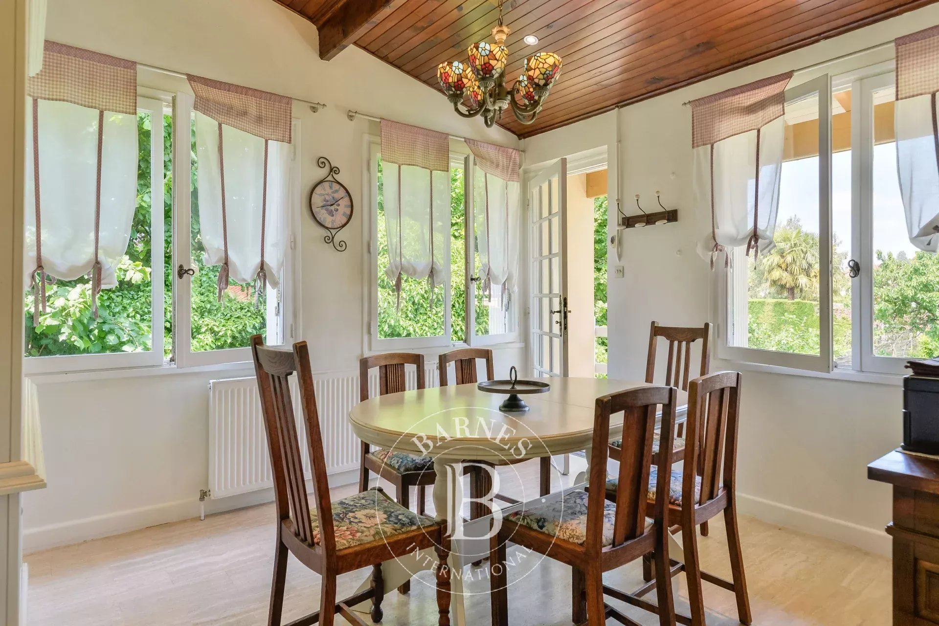 Le jardin arboré est agrémenté d'une piscine chauffée et sécurisée avec pool house.