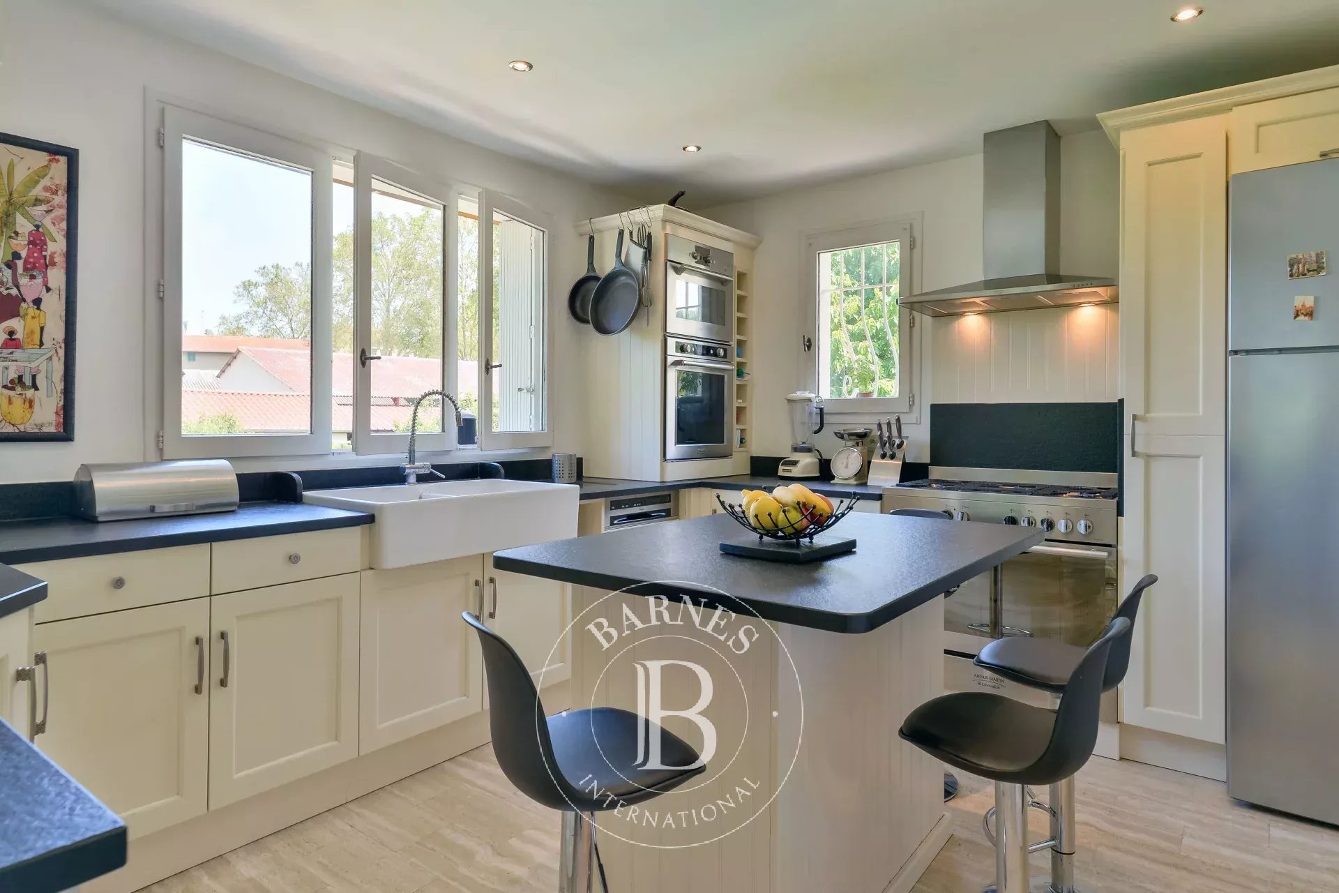 Cette maison rénovée avec beaucoup de goût, idéalement agencée dispose au rez-de-chaussée, d'un vaste séjour, un bureau, une salle à manger et une cuisine indépendante, très lumineuse. Une chambre et une salle d'eau complètent ce niveau.