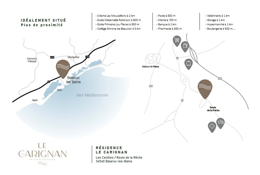 La résidence est idéalement située dans la commune de Balarucs-les-Bains, offrant un accès facile à toutes les commodités. Les supermarchés, boulangeries, écoles, restaurants et autres commerces alimentaires sont tous accessibles en moins de 5 km. De plus, vous pourrez profiter des nombreux attraits de la région, tels que le spa thermal, le bord de mer, le centre nautique et le Jardin Antique Méditerranéen. Cet emplacement unique allie les avantages d'un environnement naturel et d'un centre urbain dynamique.