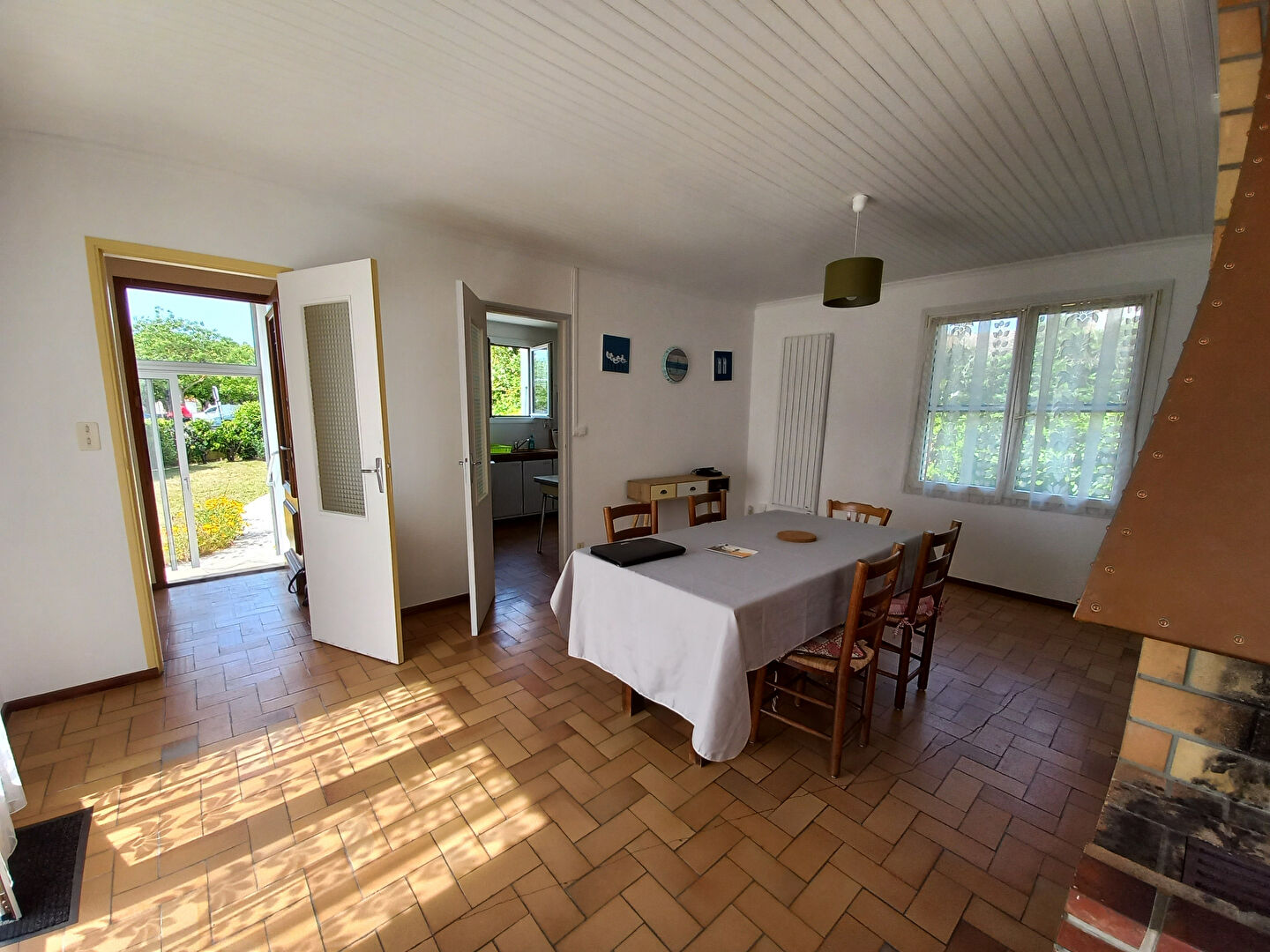 Côte Est - À 300 m des commerces, plage à pied, sur un terrain de 510 m², MAISON (1971) d'une surface habitable de 90 m² comprenant une entrée avec placard, une cuisine, un séjour de 36 m² avec cheminée, deux chambres avec chacune une salle d'eau avec wc - Une chambre indépendante avec salle d'eau et wc - Une terrasse.
