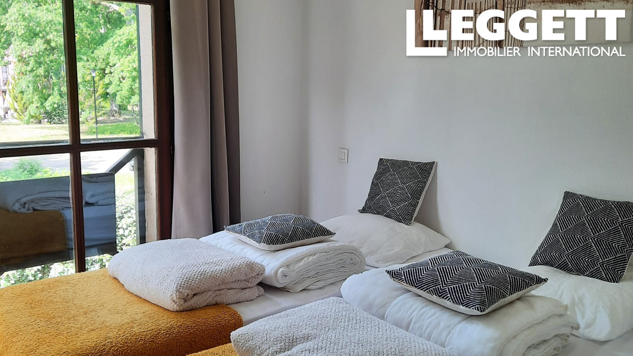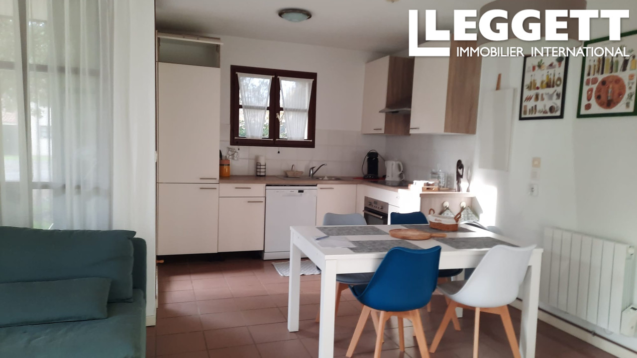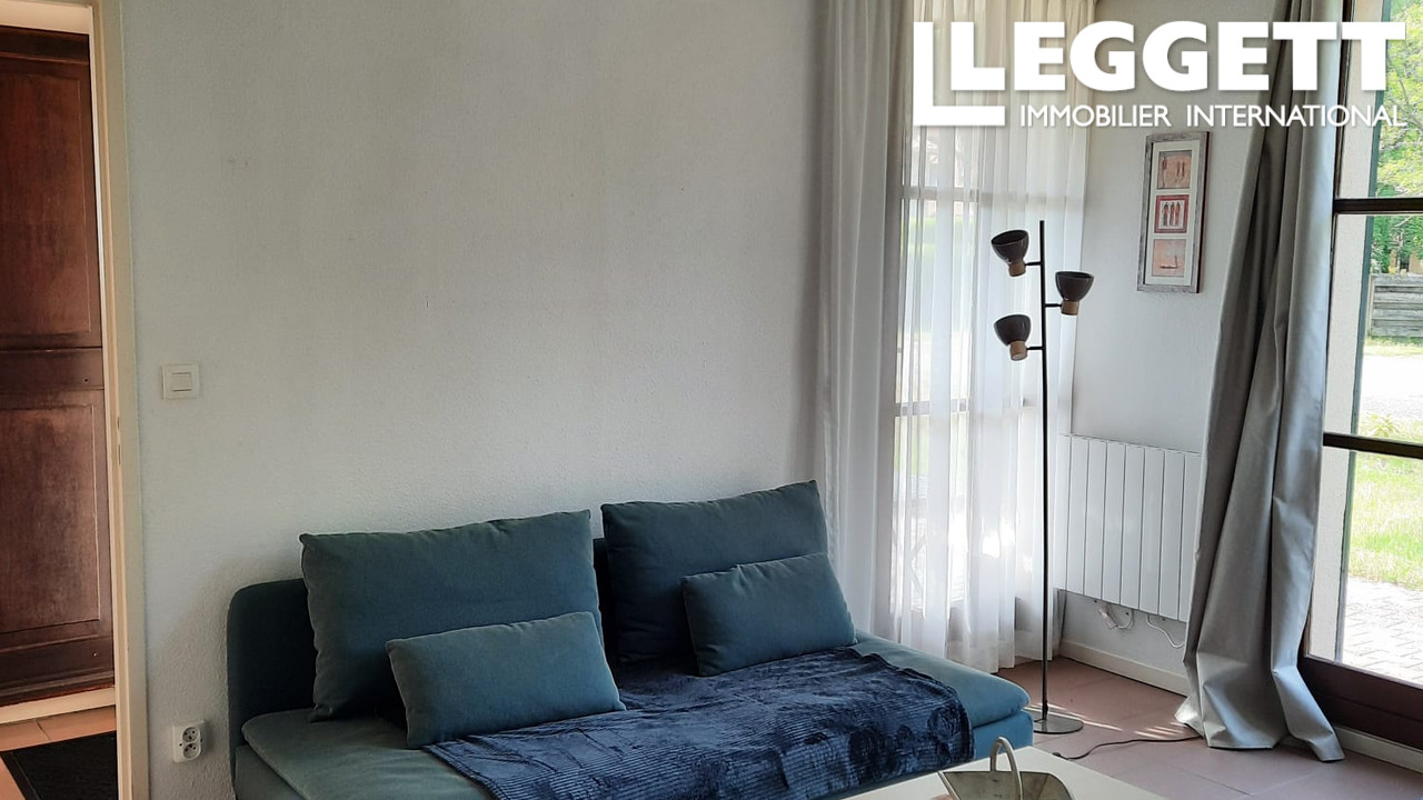 A21731EPR33 - Sur un parc résidentiel de loisirs. Villa avec un étage, d'une superficie de 67,11m². Elle comprend une cuisine ouverte sur le séjour salon disposant d'une cheminée au rez-de-chaussée et à l'étage deux chambres avec balcon, salle de bains. Une terrasse avec barbecue.