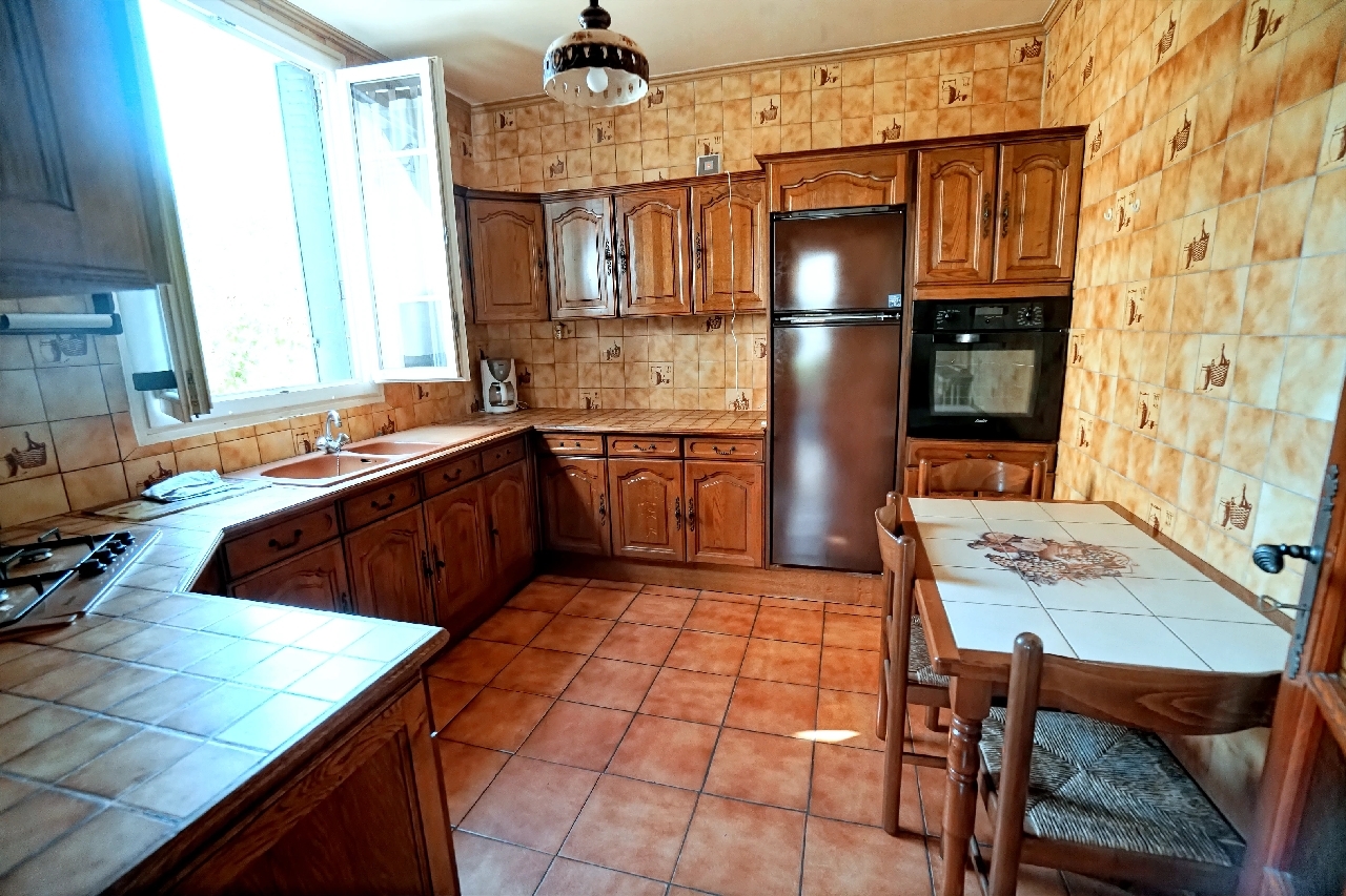 DESCRIPTIF : Entrée ? Cuisine équipée/aménagée ? Séjour avec cheminée ? Salon ? 3 chambres ? Salle de bains avec douche et baignoire ? WC. Sous-sol comprenant : garage ? atelier ? buanderie ? chaufferie.