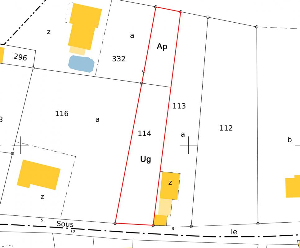 BEAUREGARD-VENDON : Beau terrain 1050 m² (ancien verger). 700 m² constructibles « zone Ug du PLU » + 350 m² non-constructibles/agricole « zone Ap ». Belle vue. Viabilités en bordure.