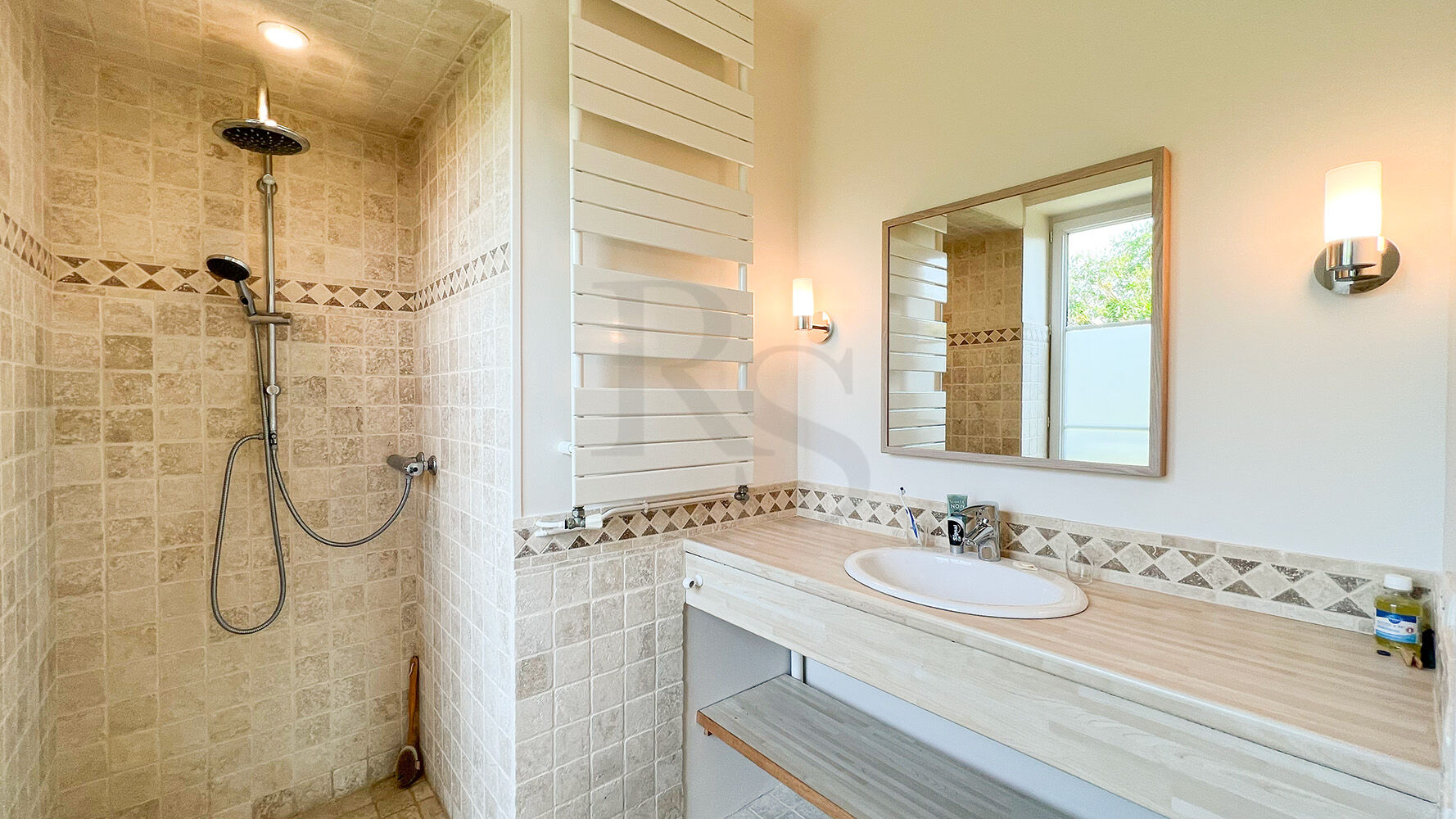 Une chambre ou un salon, avec sa salle d'eau privative et une douche à l'italienne.