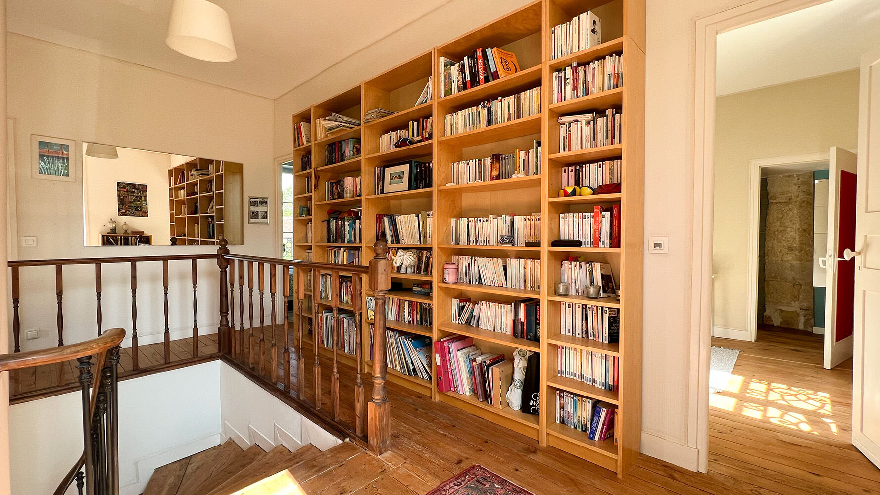 Une entrée majestueuse avec son escalier en bois massif, vous accueillant chaleureusement.