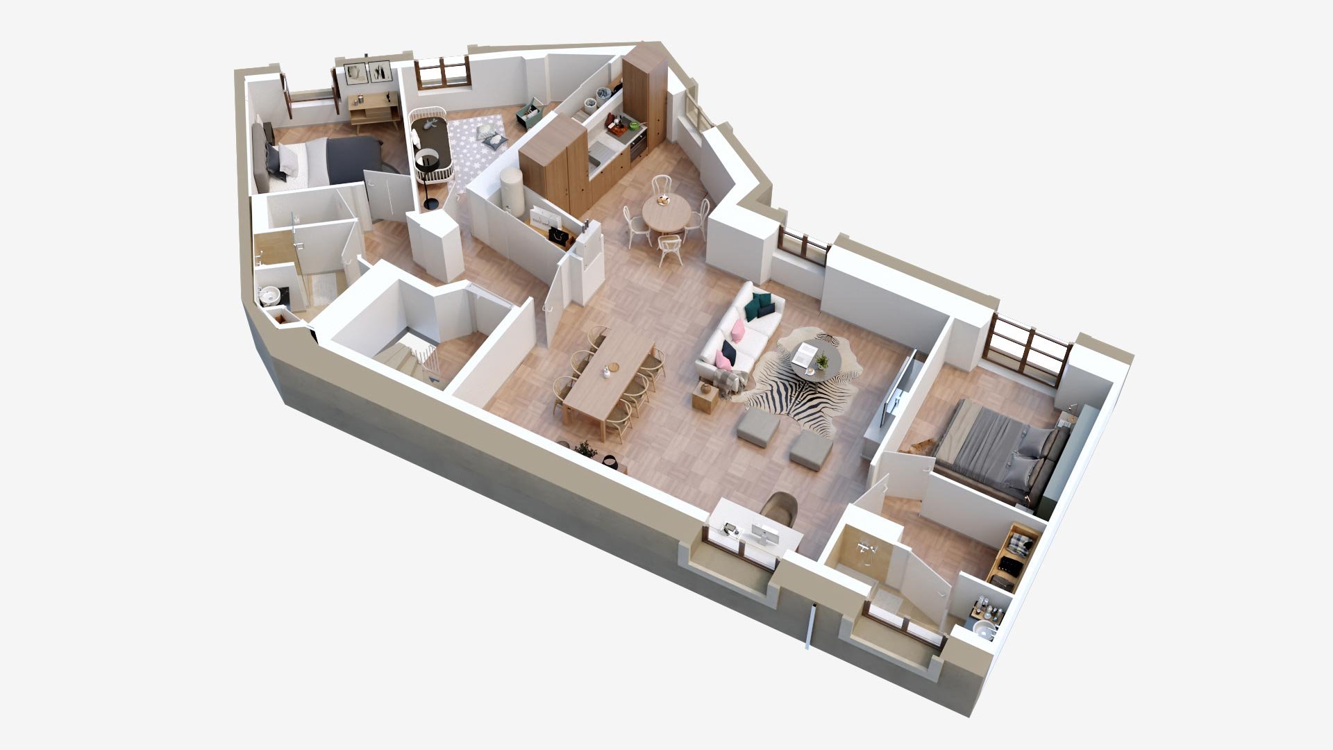 Le logement F - T4 - 101.50m² - L'appartement F est un T4 situé au RDC +1, accessible par l'escalier situé dans l'aile Ouest du bâtiment.