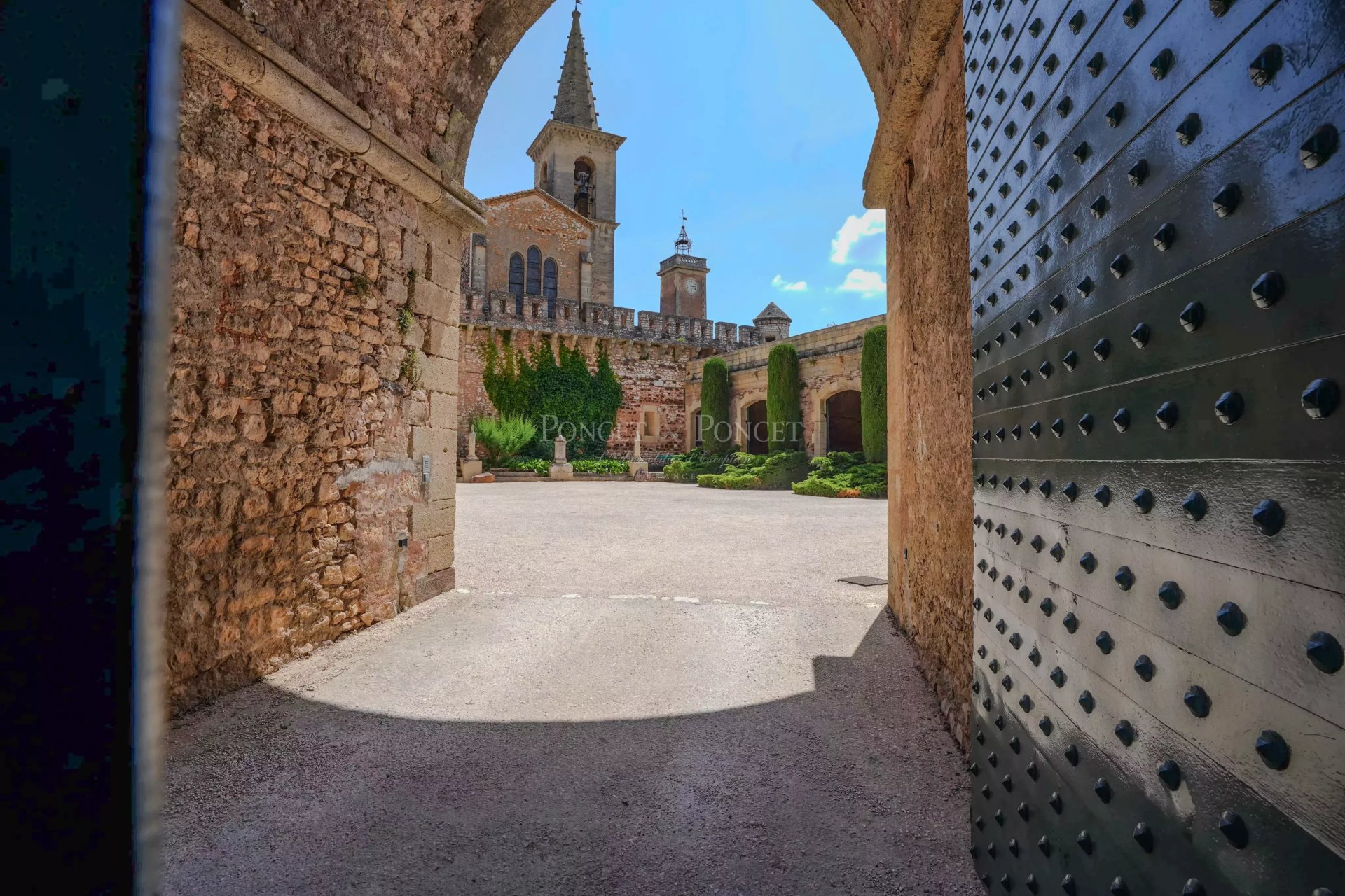 Après avoir traversé le parc vous franchissez un passage sous un solide porche et passez les grandes portes, vous découvrez alors une magnifique cour d'honneur bordée d'une chapelle seigneuriale classée, de trois garages et une sellerie aux hautes voûtes de briques imposantes, une ancienne écurie, une volière, la maison de gardien avec ses trois chambres et un second logement de deux pièces, ajoutent une dimension pratique à cette résidence d'exception.