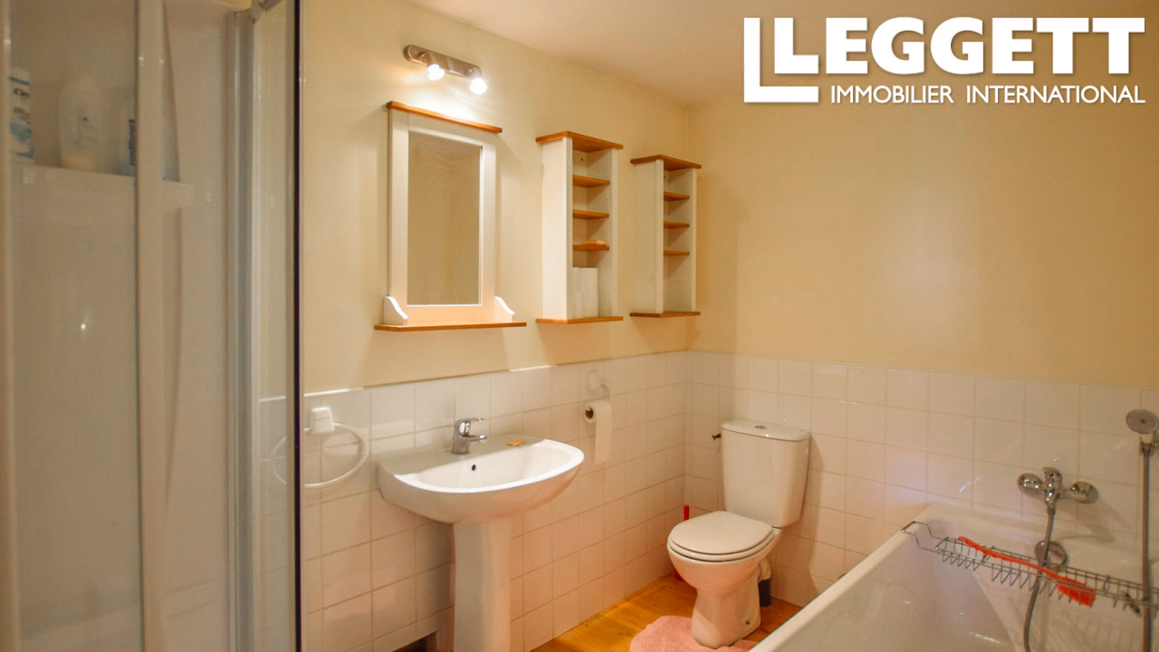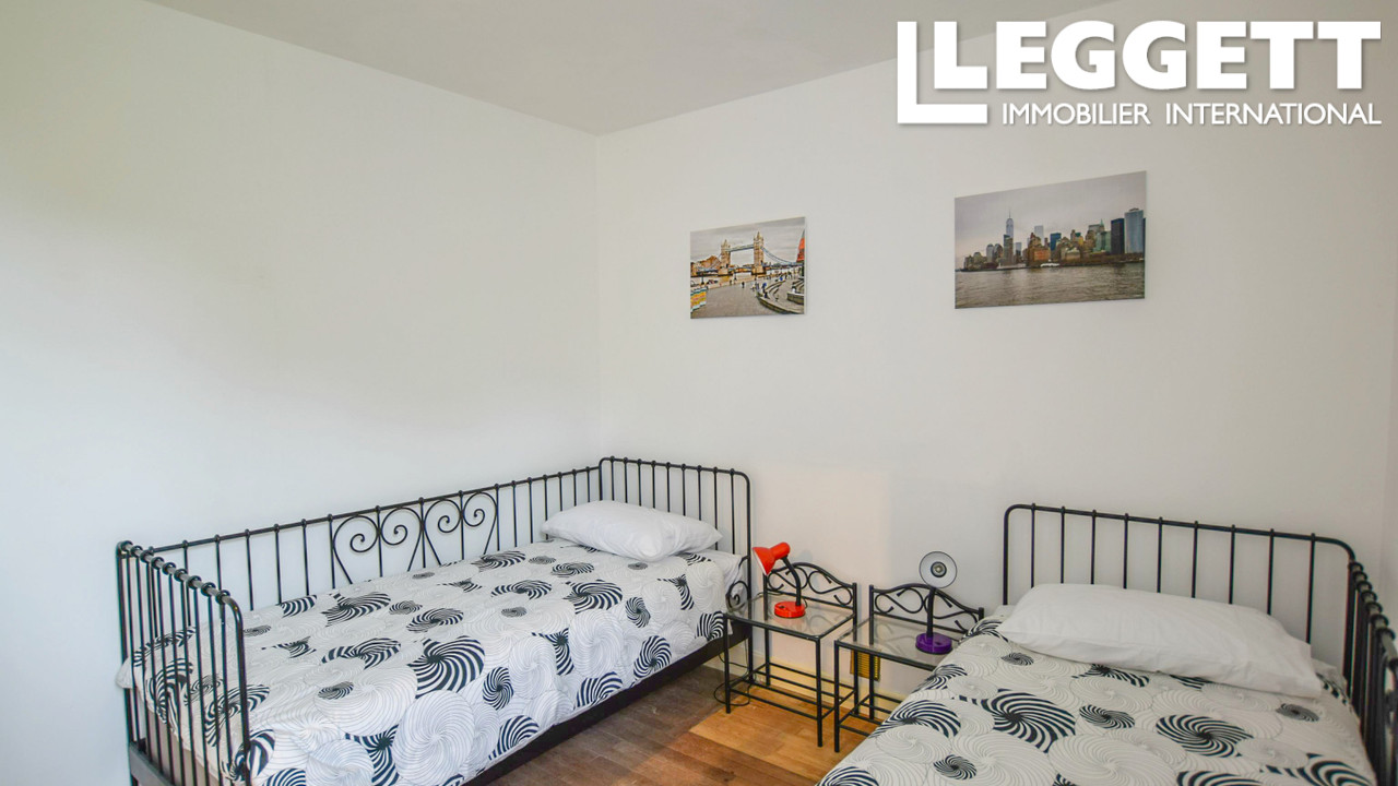 A22149SMR16 - Cette propriété atypique voit ses espaces de vie répartis entre deux maisons mitoyennes. D'un côté, il y a un grand espace de vie, avec une cuisine/salle à manger d'un côté, et le salon de l'autre, avec trois portes-fenêtres donnant accès au jardin et à la terrasse. Des escaliers mènent à la chambre principale avec salle de bains.