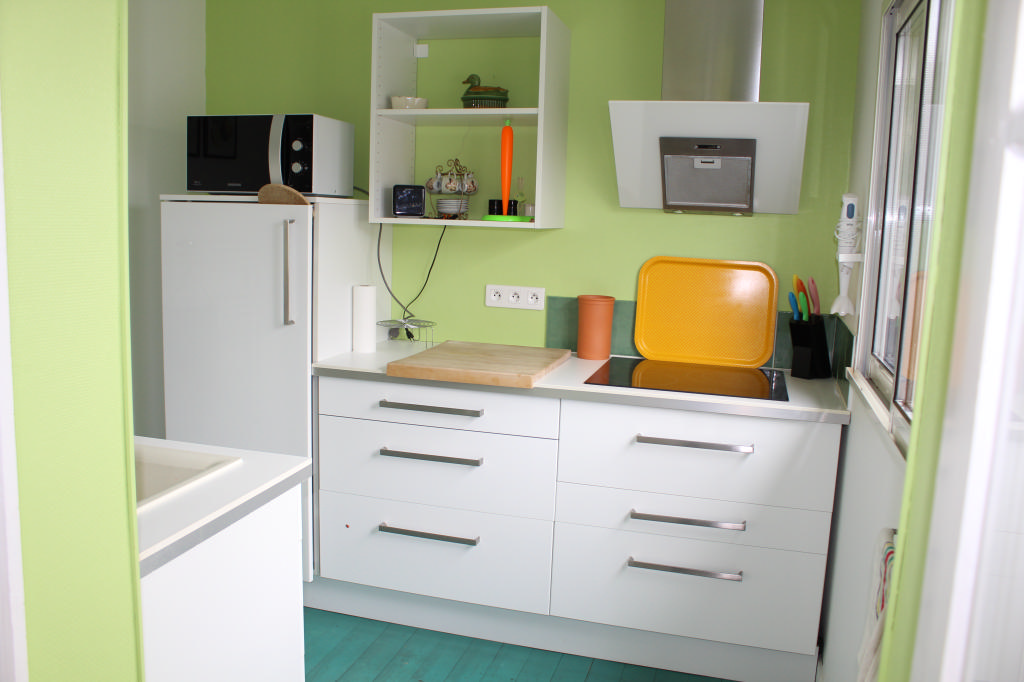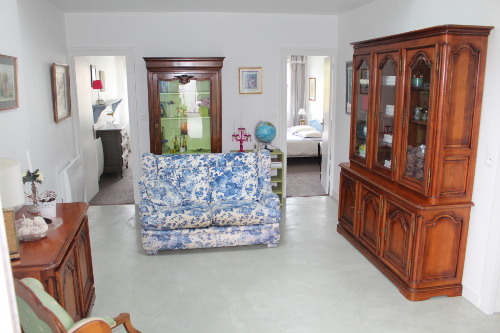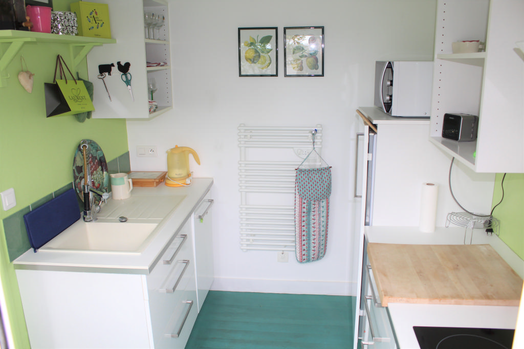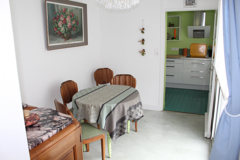 1er étage: séjour avec accès sur la terrasse, cuisine équipée et espace repas, deux chambres, salle d'eau avec wc.
