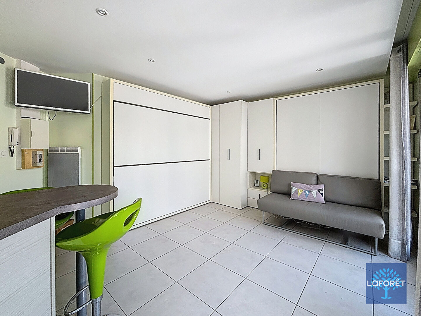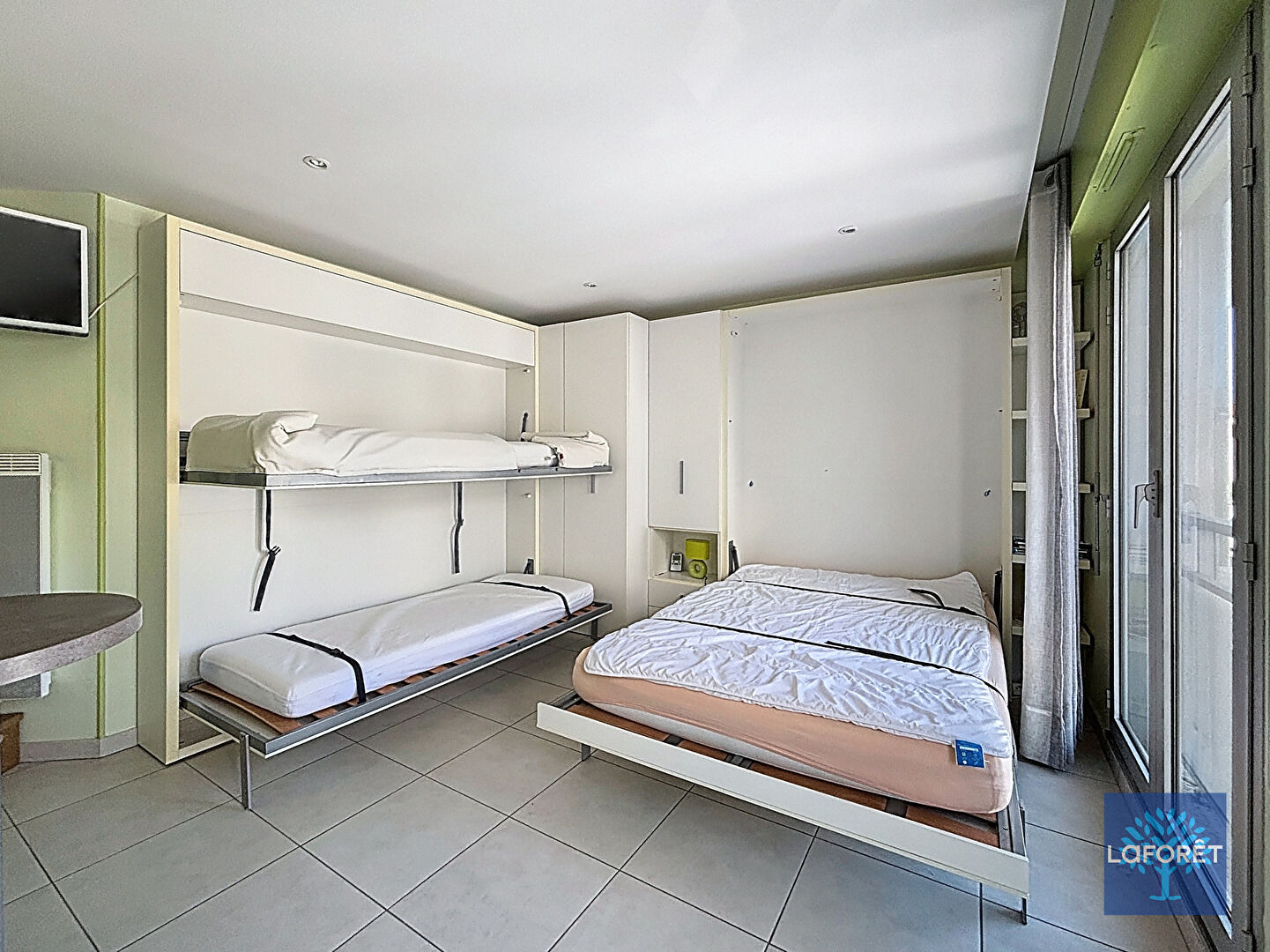 Au coeur du quartier des Présidents, avec la plage et les commerces au pied de l'immeuble, venez découvrir ce superbe studio entièrement rénové, situé dans une résidence sécurisée et équipée d'un ascenseur. Il comprend une pièce principale dotée d'un joli coin cuisine aménagé et équipé, ainsi qu'un espace de vie avec des éléments de rangement sur-mesure (avec lits escamotables pour accueillir quatre personnes) et une salle d'eau avec wc. Un bien idéal pour un projet de résidence secondaire ou d'investissement locatif.