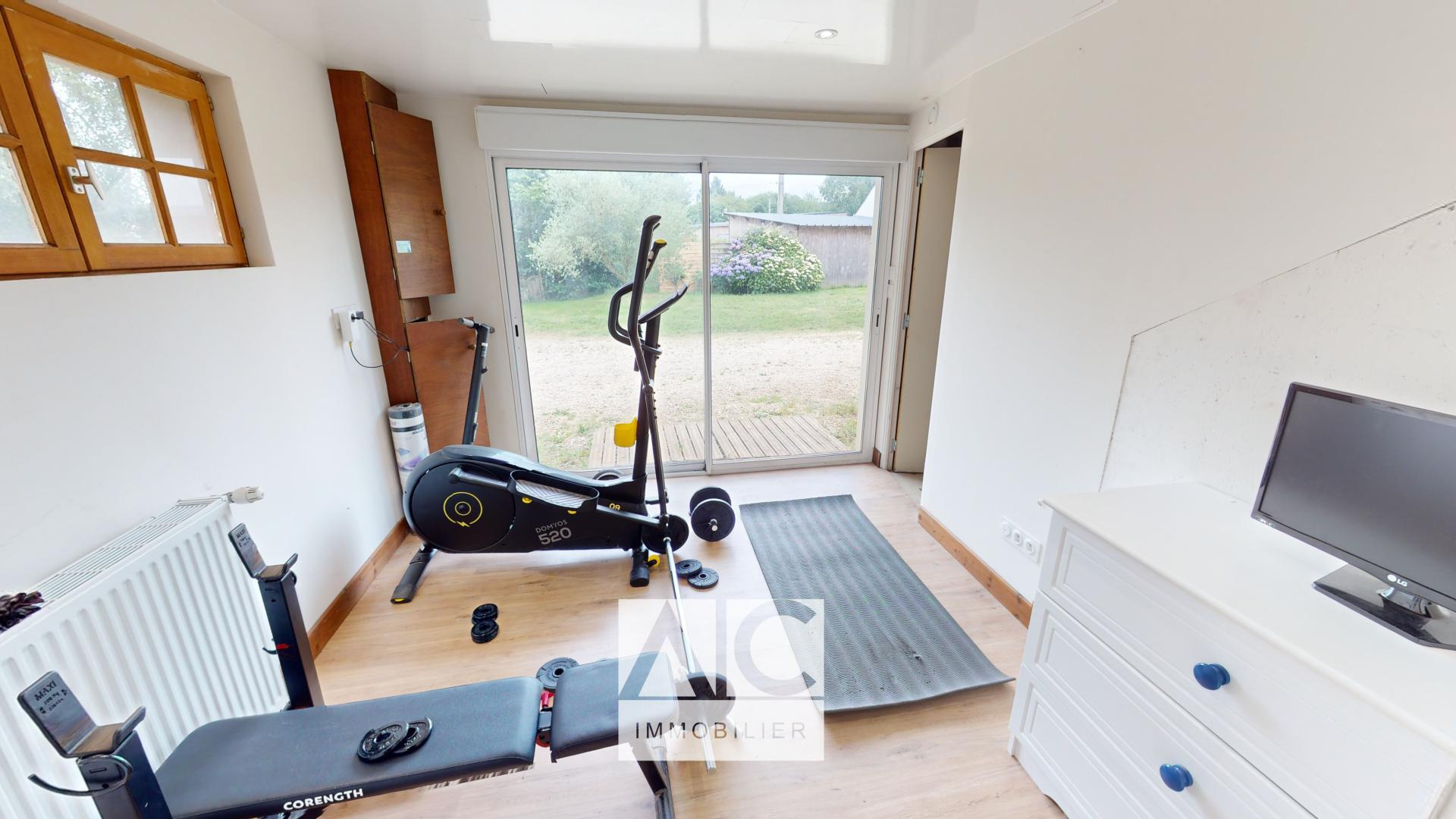 REZ-DE-CHAUSSÉE : Entrée / Salon-séjour avec poêle à bois / Véranda (14m2) / Une chambre équipée d'un coin douche / WC indépendant / Buanderie et chaufferie / Salle de loisir (+ pièce de détente à l'étage)