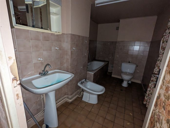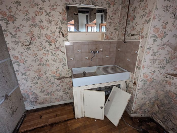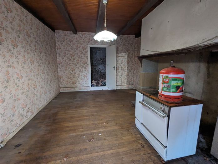 une chambre, 2 autres pièces, cellier et une salle de bains avec wc. Un bûcher attenant.
