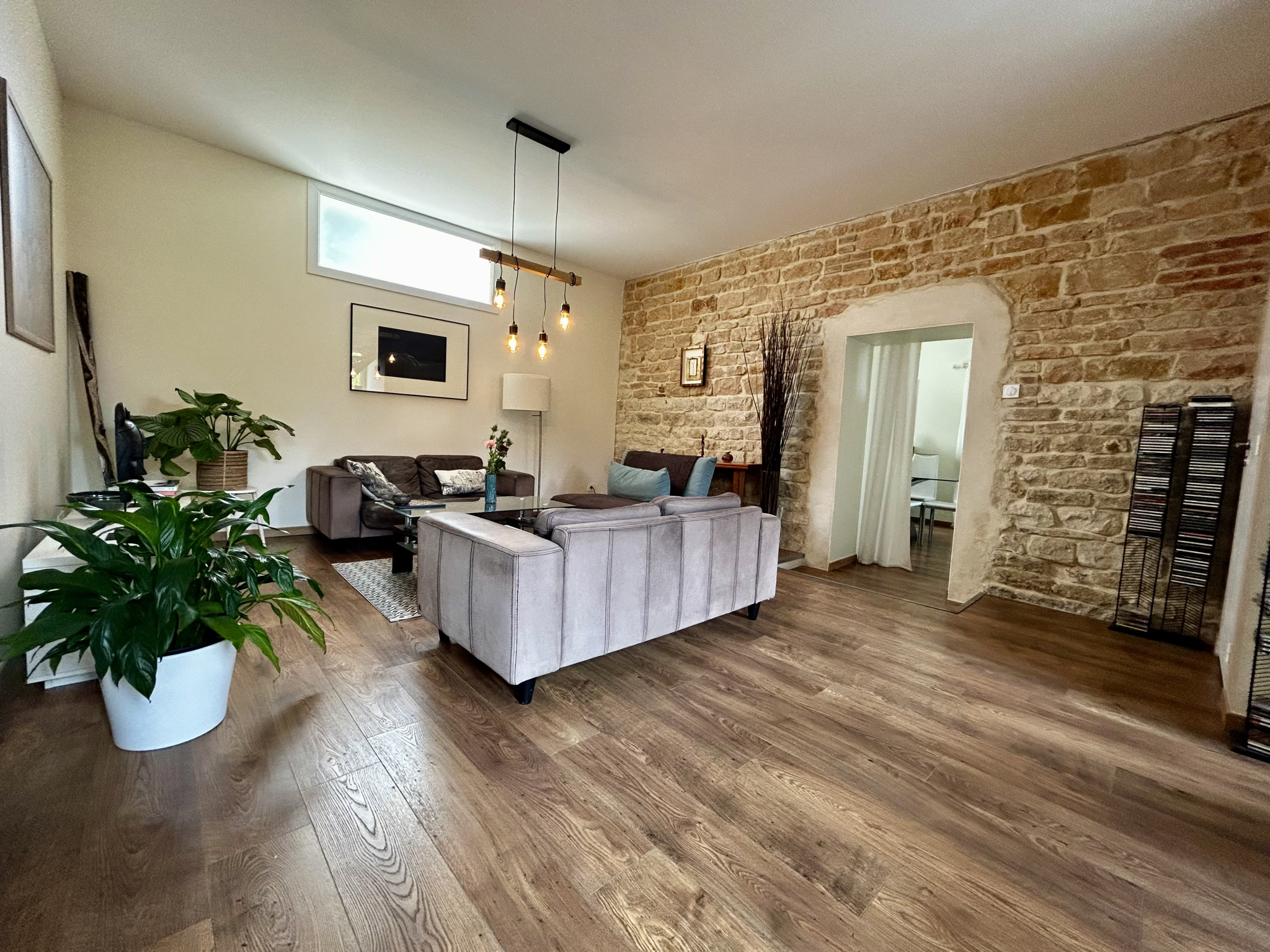 A vendre à Couternon (5mn Dijon Est par voie rapide), beaucoup de charme pour cette ancienne forge de 1900 réhabilitée en habitation de 118 m2 habitables, belle pièce de vie avec cuisine équipée contemporaine ouverte mi parquet, mi carreaux ciment (PF sur terrasse et jardin), salon (pierres apparentes - parquet - pf sur jardin), mezzanine et 3 chambres en étage dont une avec dressing, salle de bains, 2 wc, buanderie, garage, 2 belles terrasses, très bel état.