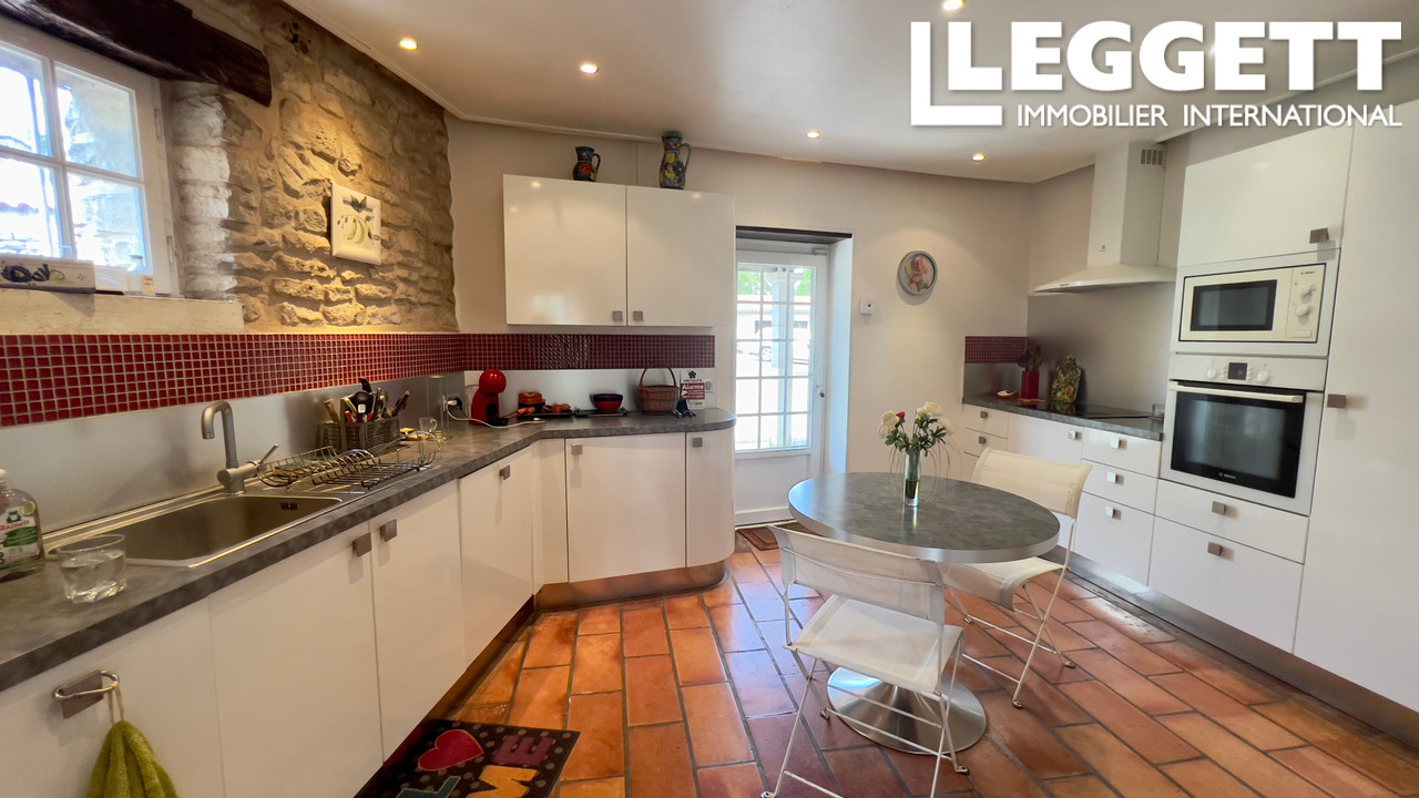 A22775FO16 - Située dans un environnement calme à la sortie de Foussignac, cette propriété spacieuse de 225 m² habitables offre 4 chambres, dont une au rez-de-chaussée. Parfaite comme résidence principale ou maison de vacances, elle offre un fort potentiel. Le rez-de-chaussée comprend une grande cuisine/salle à manger lumineuse avec poêle à bois, un salon avec cheminée, un WC, une buanderie, une pièce de stockage et une grande chambre avec en-suite salle d'eau et accès direct à la terrasse et au jardin. Le premier étage comprend actuellement 3 chambres, une salle de bain double accès et un WC séparé. Cet étage pourrait être amélioré facilement en supprimant certaines cloisons, modernisant la salle de bain et remplaçant les revêtements de sol. Le deuxième étage offre une belle hauteur sous plafond et est utilisé comme bureau mais pourrait devenir une suite pour les invités.