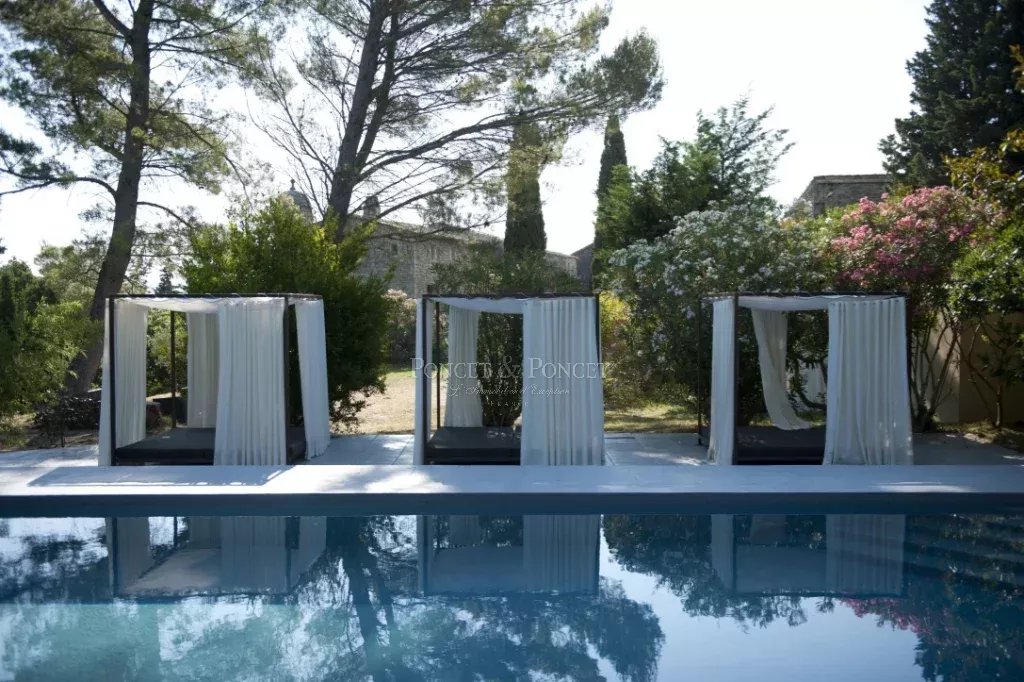 Niché aux portes d’Uzès, ce domaine d’exception, dont l’histoire s’étend du XVI? au XVIII? siècle, incarne tout le raffinement d’une demeure ancestrale sublimée par une rénovation prestigieuse.Il fut autrefois un haut lieu de la culture de la lauze, cette pierre calcaire typique du pays uzétien, utilisée pour les toitures et les bâtisses de caractère. Témoin du riche passé architectural et artisanal de la région, le domaine a su préserver son âme et son authenticité, tout en intégrant des prestations haut de gamme pour un confort absolu.