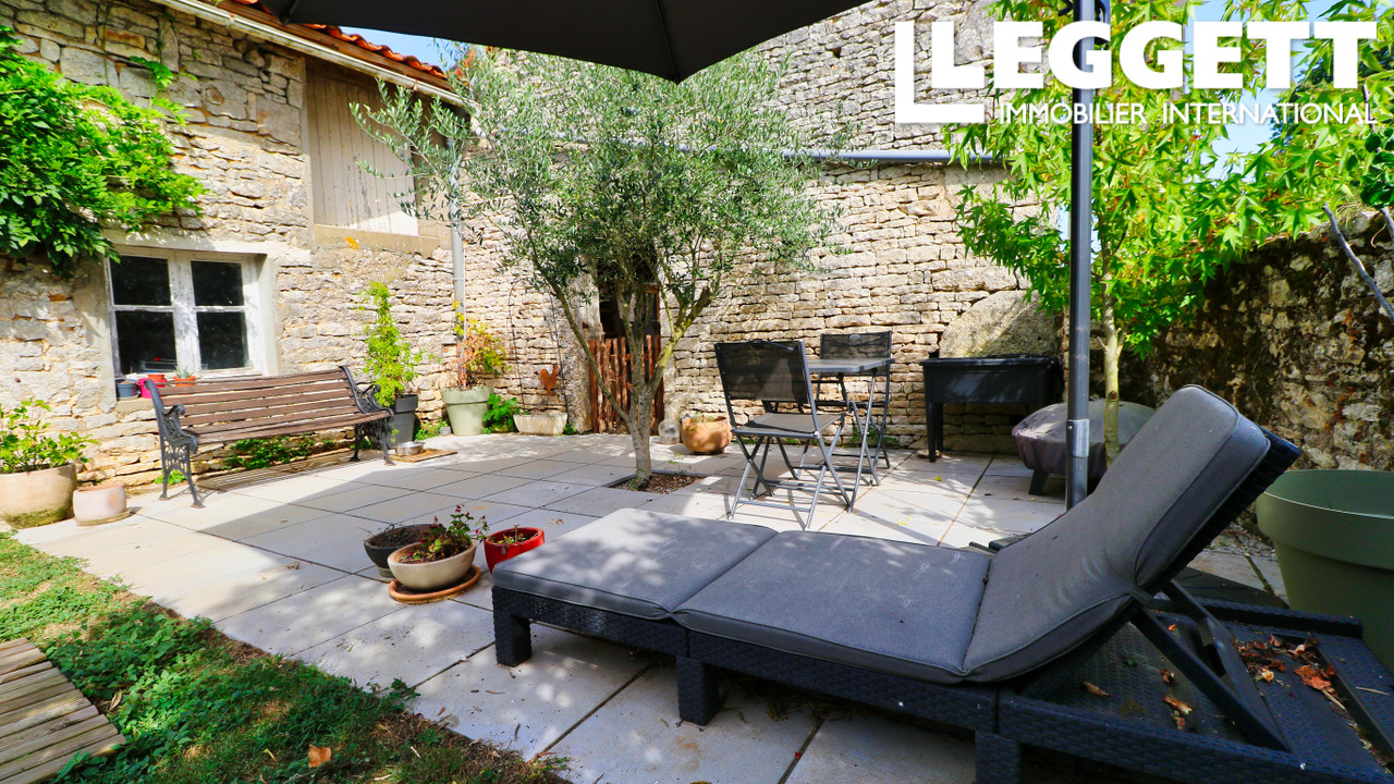 A22942MCF86 - Charmante maison de 3 chambres avec un joli jardin, des granges et un espace pour une piscine, située dans un hameau paisible mais non isolé, à proximité du bourg de Civray avec tous ses magasins, bars, restaurants, commodités et l'idyllique fleuve Charente qui le traverse. Excellent emplacement pour une résidence permanente, une maison de vacances ou un investissement/gîte.