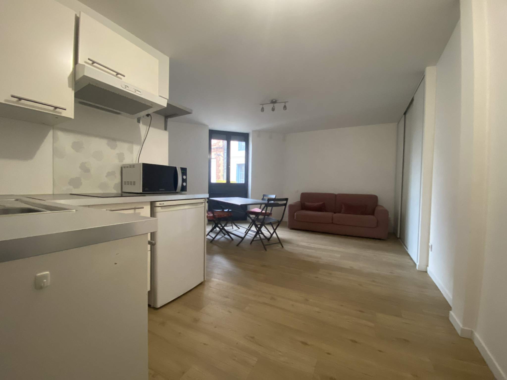 En centre-ville de Castelsarrasin un immeuble sur trois niveaux de 156 m2 env. comprenant un local professionnel, un appartement studio loué, un appartement duplex T2 loué et combles. Refait à neuf en 2012. Revenus locatif actuel sans le local commercial 865 EUR mensuel hors charges.