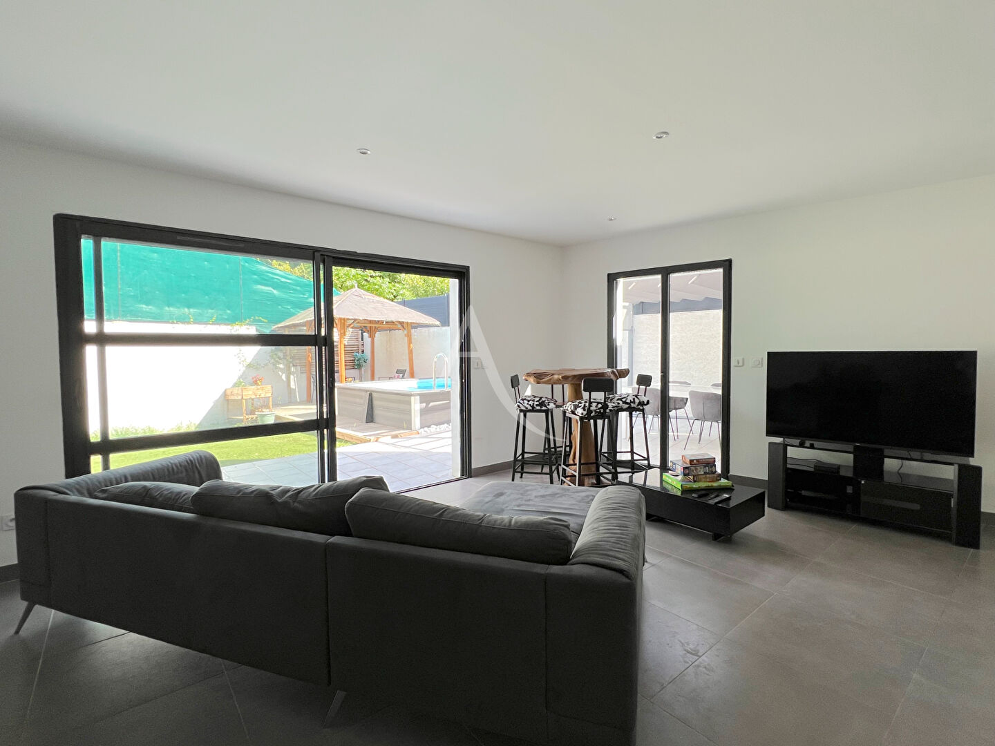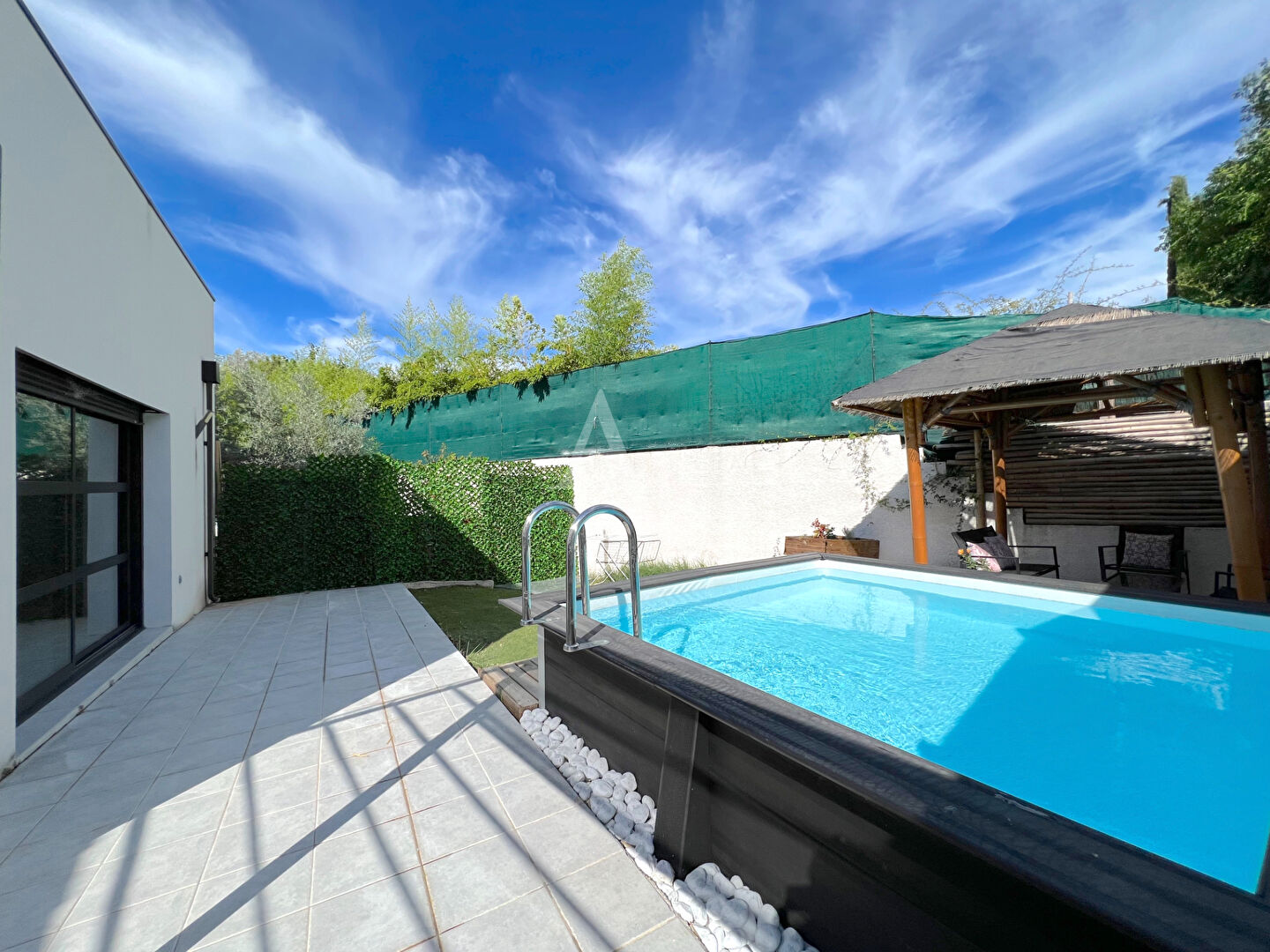 Grabels, agréable village situé aux portes de Montpellier et de la station de tram Euromédecine. Belle maison contemporaine d'une superficie de 105 m2 sur une parcelle de 350 m2 située dans un quartier résidentiel calme, proche de la nature et du parc de l'Avy. Comprenant : grande pièce jour de 50 m2 avec cuisine ouverte équipée, dégagement, chambre en rez-de-chaussée, salle de douches, WC, deux chambres à l'étage dont une ouvrant sur une belle terrasse de 35 m2 avec vue dégagée, salle de bains, WC. Garage aménagé en SPA, 2 places de stationnement. Agréable jardin avec espace détente doté d'un bassin et d'une paillote. Possibilité d'agrandissement. Très bel environnement !