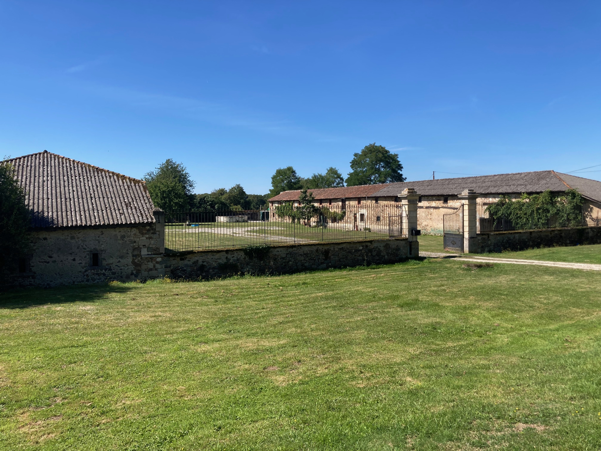 RÉF. 34537 : 323 300 euros H.A.I, (prix à débattre) ASNIERES/BLOUR (86), secteur L'Isle Jourdain, longère indépendante du XVIIé siécle avec gite et nombreuses dépendances sur 1,22 ha env., à usage d'habitation, longére, 405 m2 env. utilisables composée : hall, cuisine amé./séjour (poêle à granulés), arrière cuisine (poêle à bois), 1 pièce de vie avec accès terrasse, salon (poêle à bois), couloir, petit salon, salle d'eau, wc, 1 chambre, à l'étage : palier, 4 chambres, salle de bain, cabinet de toilette, couloir, salle d'eau. Travaux à terminer à l'étage : : 2 chambres avec salle d'eau/wc dont 1 avec accès terrasse, dégagement. Chauf. central bois, ancienne fosse septique. Gite indépendant, 55 m2 env. composé : cuisine/séjour (poêle à granulés), salle d'eau/wc, à l'étage : 1 pièce mansardée, fosse toutes eaux. Un bâtiment comprenant : 2 granges de 254 m2 et 140 m2, cellier de 87 m2, puits. 2nd Bâtiment comprenant : poulailler 17 m2, grange avec écurie de 458 m2, écurie 110 m2, garage 50 m2 avec grenier, fournil et ancienne porcherie. Terrain attenant.
