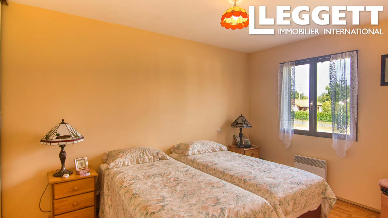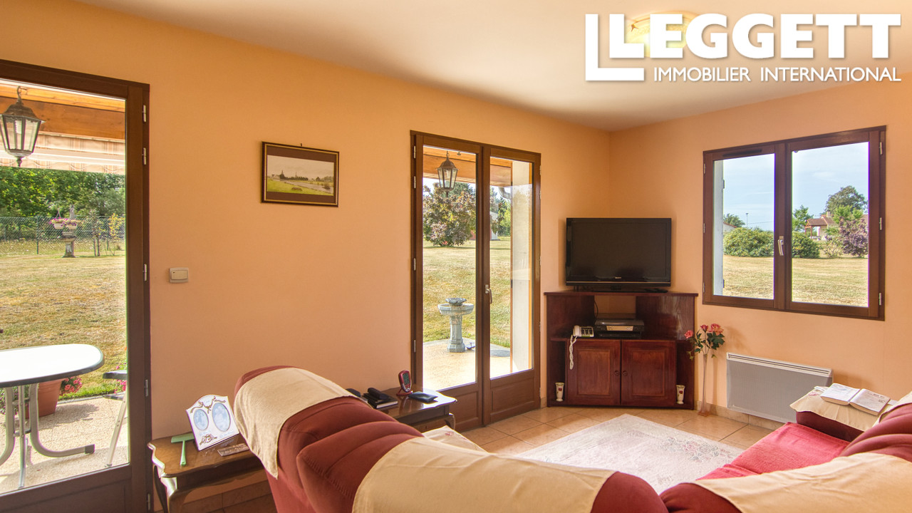 A23858AR87 - Grand jardin avec une maison de plain-pied de deux chambres construite en 2005. Les propriétaires ont également acheté la parcelle de terrain constructible voisine. Vous avez de l'espace pour vous agrandir ou simplement profiter de la propriété telle qu'elle est. Tout à l'égout, belle toiture et double vitrage. Ventilation VMC et chauffage par radiateurs électriques.