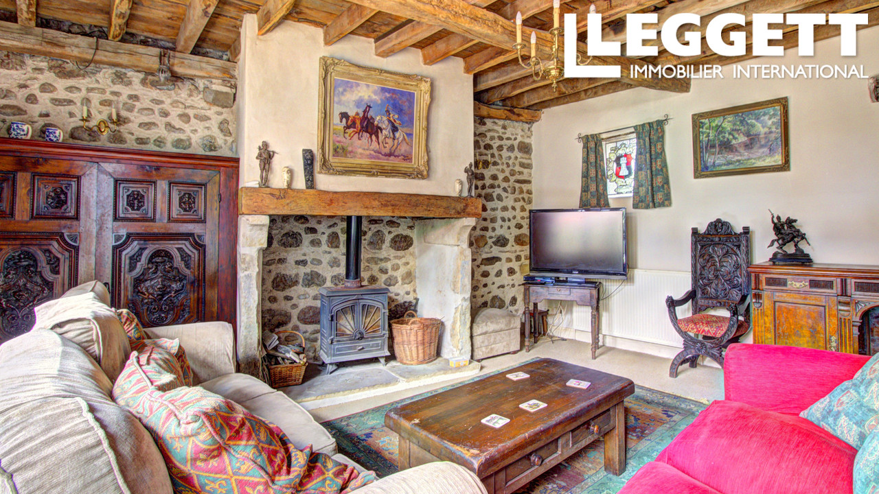 En excellent état, la propriété a été rénovée avec goût, intégrant de caractéristiques architecturales charmantes... un escalier traditionnel en bois, des chevrons apparents et des murs en pierres apparentes.