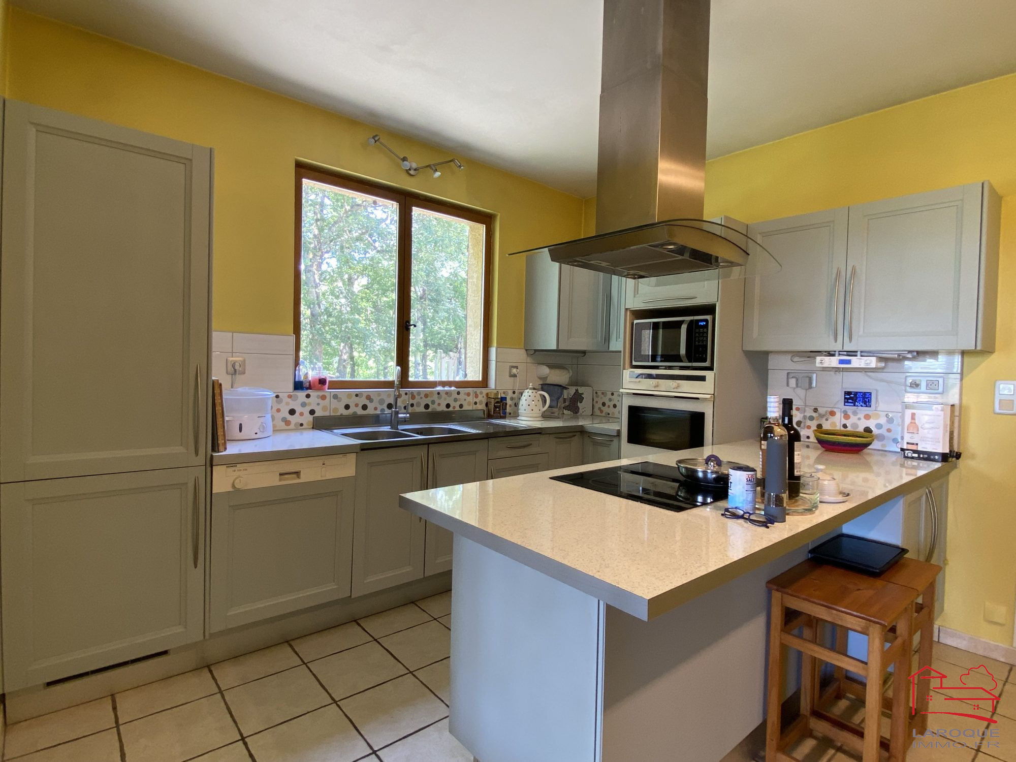 A 3 minutes du village de LAROQUE TIMBAUT, secteur calme et agréable avec vue sur la vallée, maison d'habitation T7 avec un terrain clos et arboré d'une superficie de 5 150 m². Elle est composée comme suit : une salon-salle à manger avec poêle à granulés, un espace bureau, une cuisine aménagée et équipée, une chambre parentale avec salle d'eau et wc, une buanderie/cellier, trois chambres, une salle de jeux et une salle d'eau avec wc.