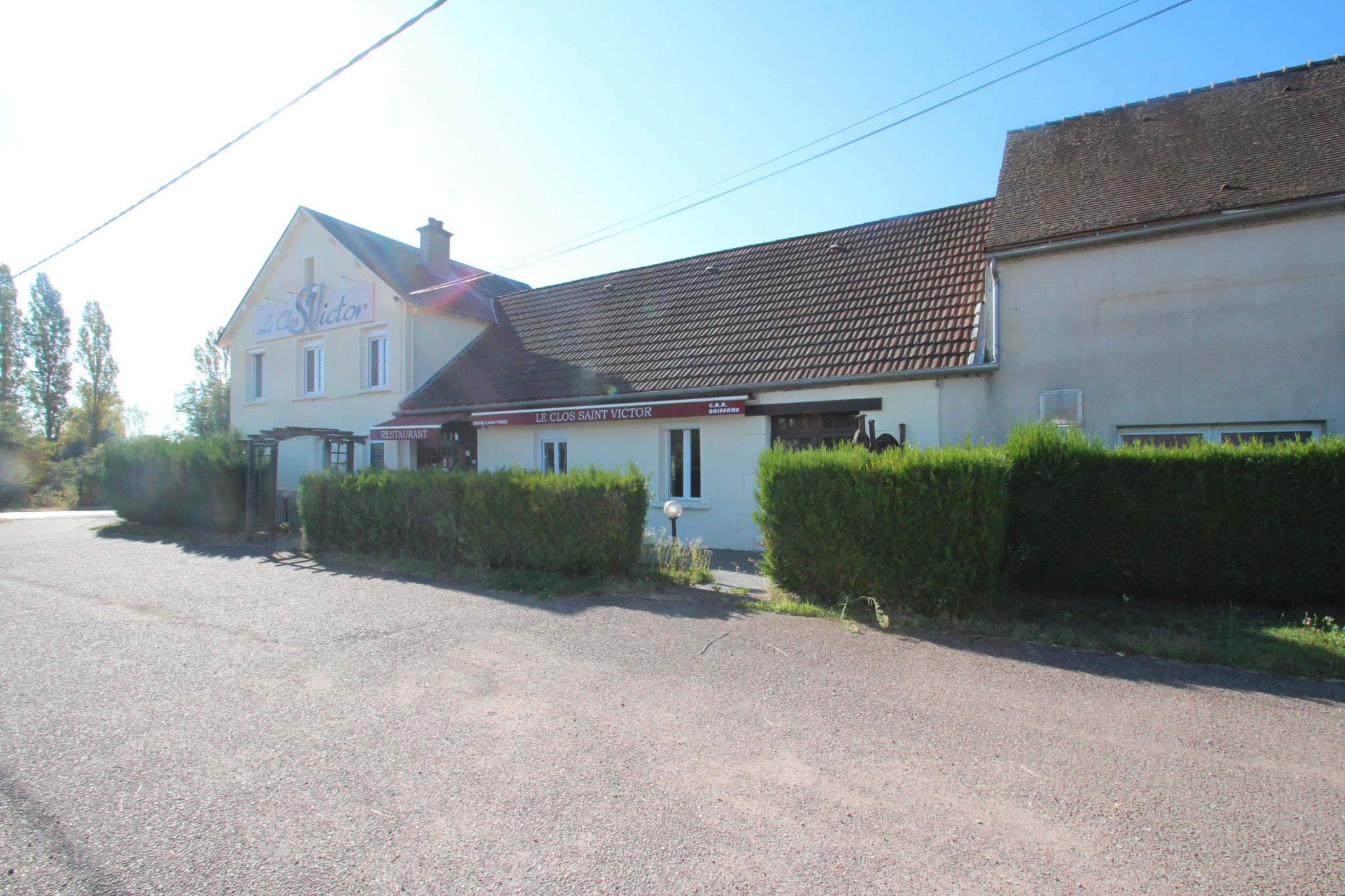 A DEVAY, murs commerciaux (ancien restaurant) actuellement loués 1052 EUR/mois, bon état général, excellent emplacement avec grand parking comprenant en rez-de-chaussée une grande salle de plus 80 m2, grande cuisine entièrement équipée pour les professionnels de 55 m2, sanitaires, bar avec salle de 35 m2, et à l'étage appartement de type F2 comprenant cuisine ouverte sur séjour, chambre, salle d'eau et wc.