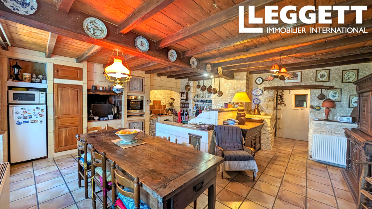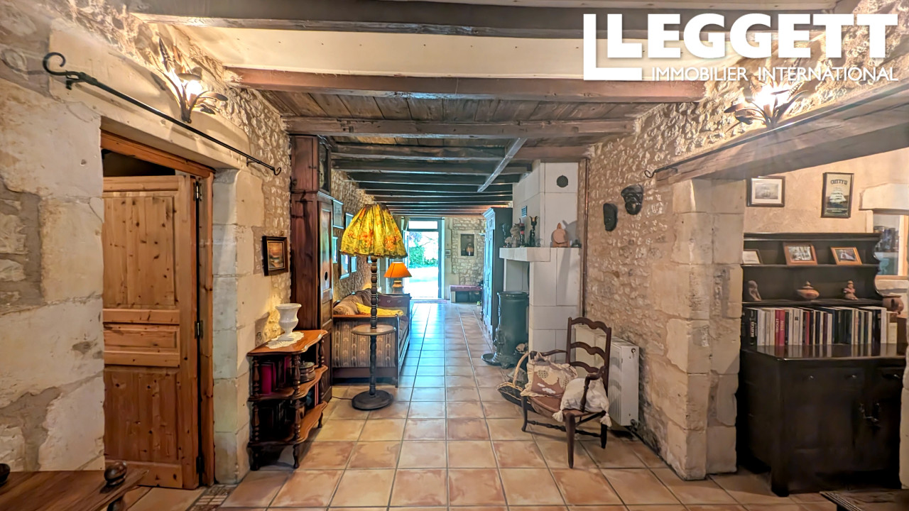 A23593ELM17 - Située au sud de la Charente-Maritime, cette charmante maison en pierre de 300 m² offre de vastes espaces de vie dans un cadre idyllique. À seulement 15mn de la station thermale de Jonzac, 45mn d'Angoulême et de sa gare TGV, et 60mn de Bordeaux et de son aéroport international.