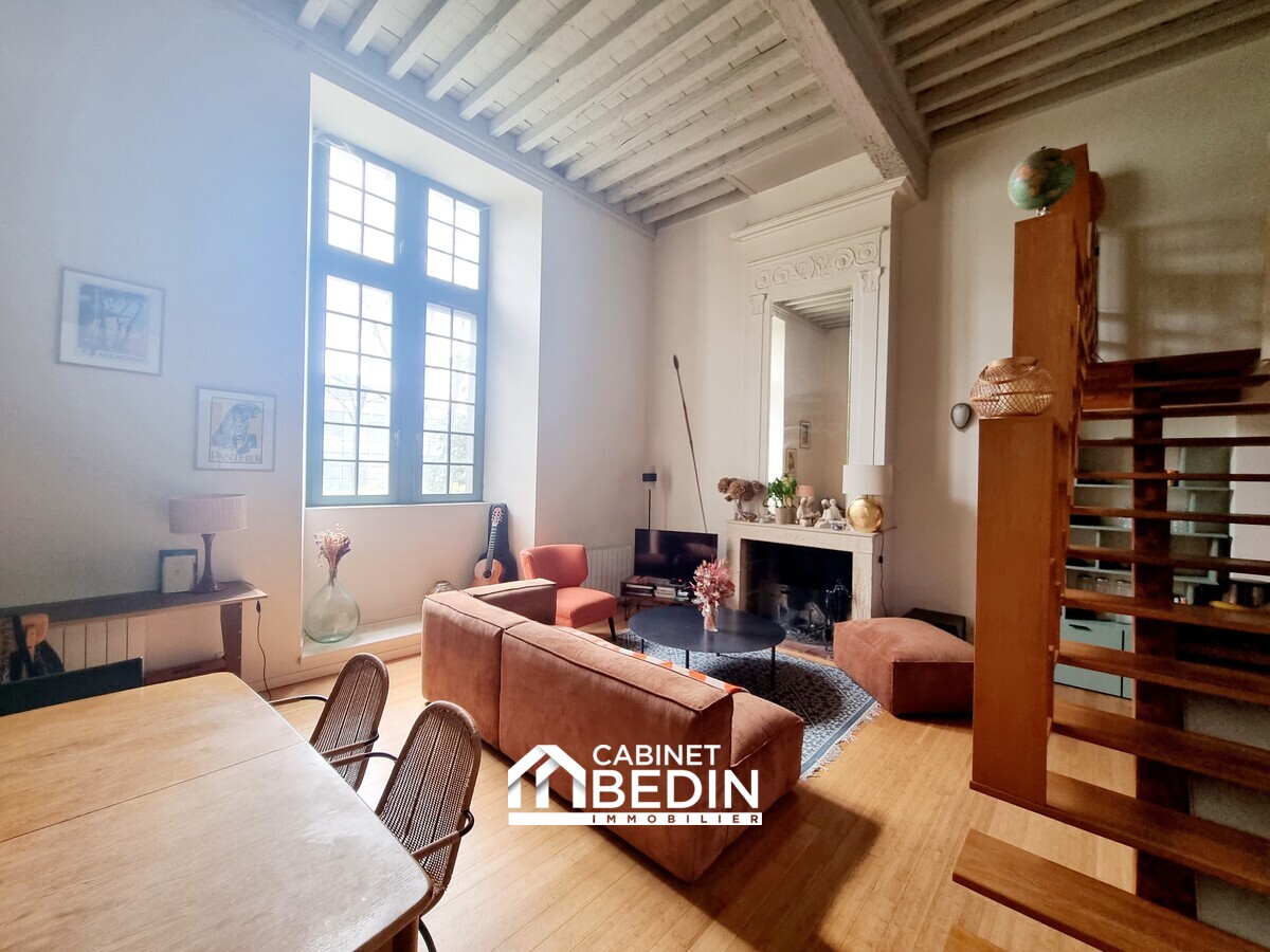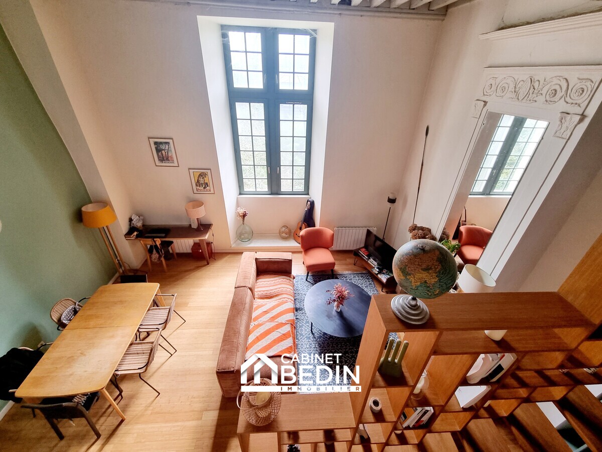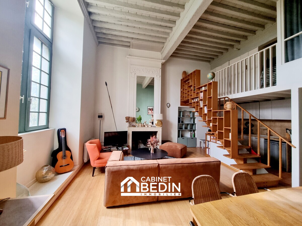 BORDEAUX . Superbe appartement en duplex, situé au 2 ème étage d?une petite copropriété pleine de charme. Dès l?entrée, vous découvrirez une partie parentale avec chambre, salle d'eau et wc indépendant. La cuisine ouverte s?intègre harmonieusement à une vaste pièce de vie baignée de lumière, sublimée par une cheminée fonctionnelle et une impressionnante hauteur sous plafond de plus de 4,60 mètres.