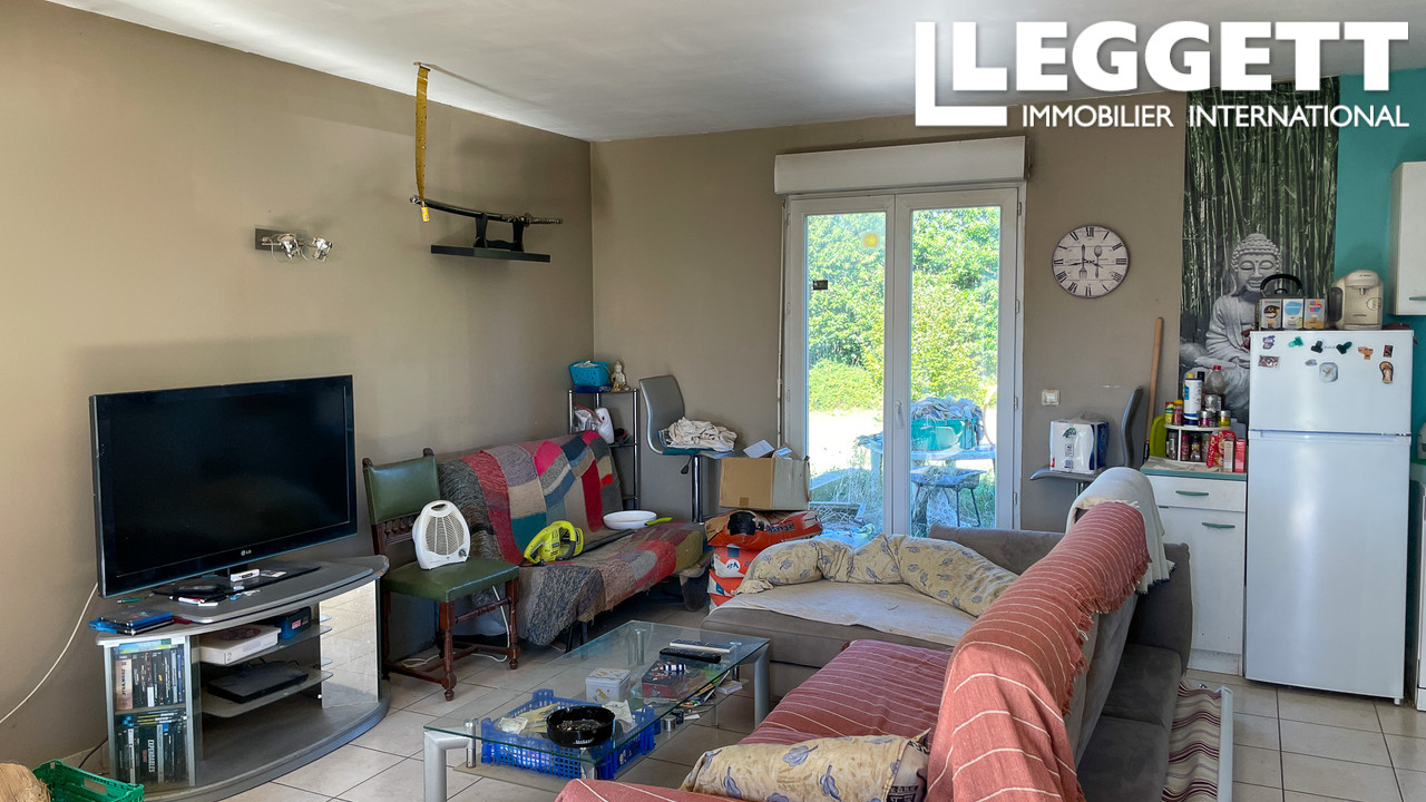 La propriété comprend un séjour lumineux avec poêle à bois et une cuisine ouverte, deux chambres, une salle d'eau et un WC séparé. Bénéficiant de double vitrage et d'une bonne isolation (classe énergétique D), la maison est raccordée au tout-à-l'égout. Le chauffage est assuré par une combinaison de poêle à bois et radiateurs électriques.