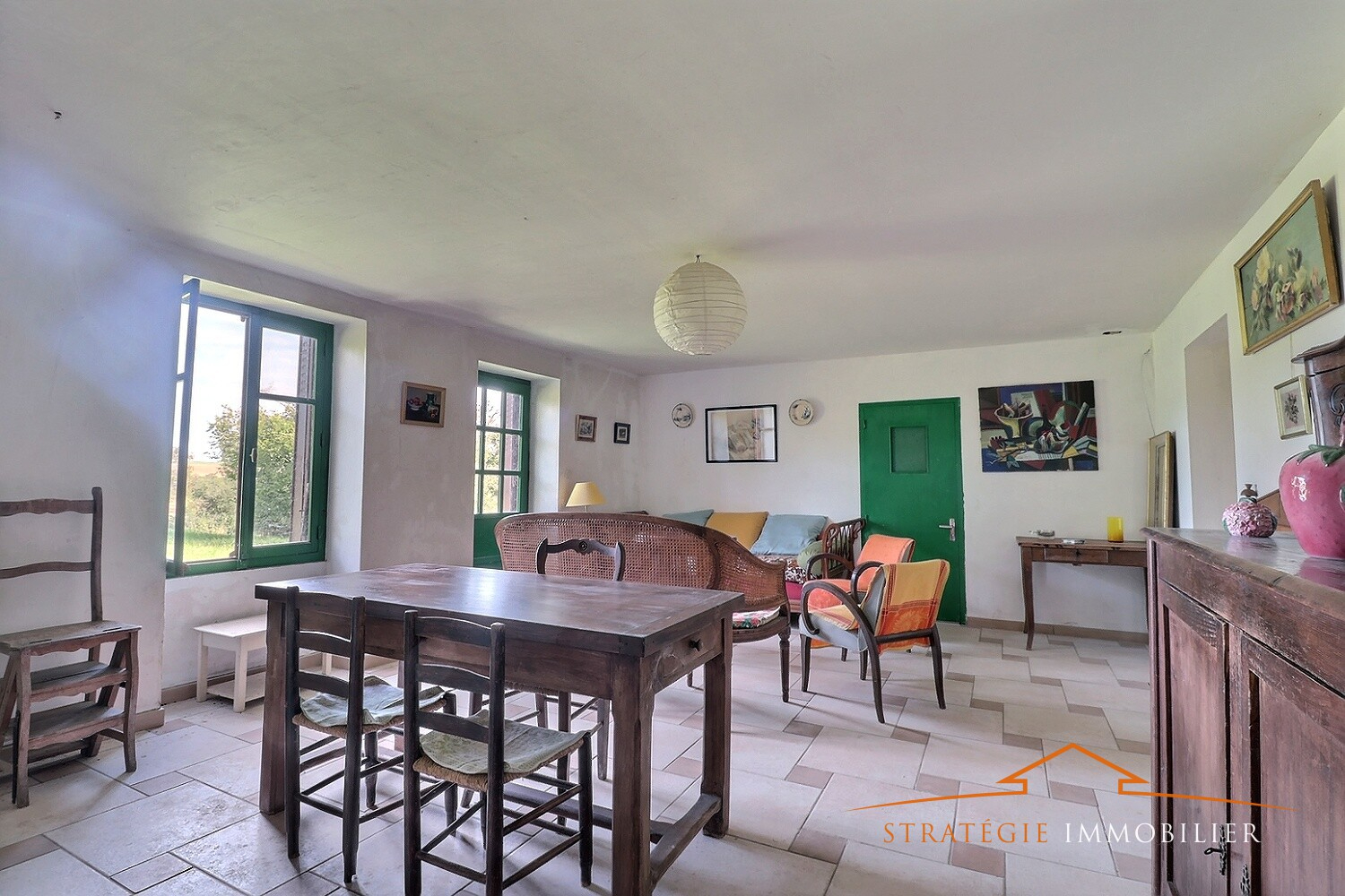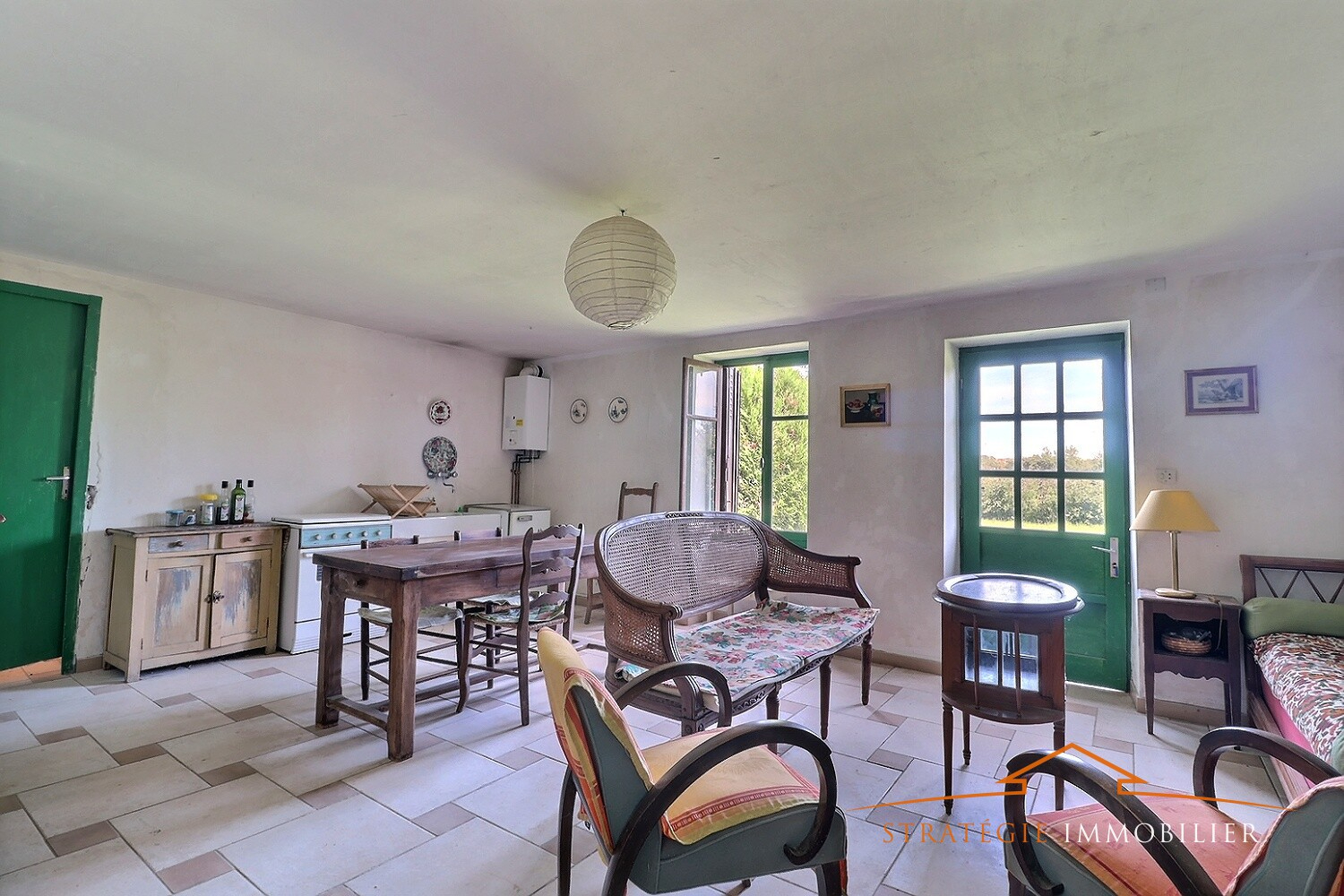 Coup de coeur assuré pour cette ancienne longère offrant en rez-de-jardin : une grande pièce d'entrée (baie vitrée) avec accès sur mezzanine, et grenier aménageable, une pièce avec cheminée (futur salon en cours de rénovation, une grande pièce à vivre avec espace cuisine (accès sur terrain), trois chambres, salle de bains-WC, une pièce avec cheminée (futur salon en cours d'aménagement).