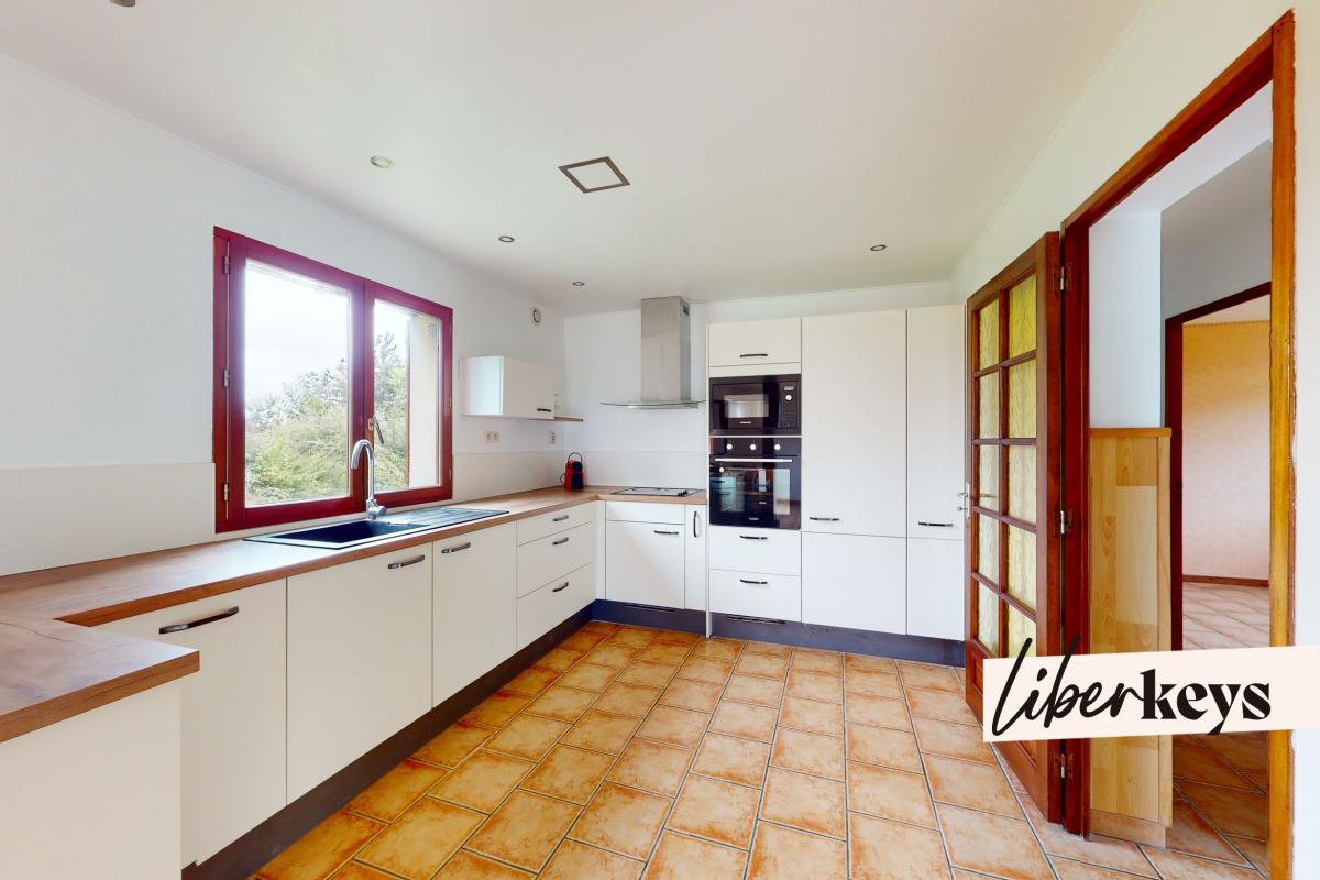 La maison comprend une entrée avec placard qui dessert d'une part, au rez-de-chaussée, une très belle cuisine RÉCENTE indépendante, spacieuse et équipée d'électroménagers et de mobiliers de qualité , un double séjours, avec cheminée, de 40 m² donnant sur une véranda de 15 m², une chambre avec salle de douche neuve, et un wc. A l'étage, trois chambres dont une de 25 m², baignée de lumière avec dressing et balcon, une salle de bains neuve avec baignoire d'angle et wc. Un couloir au RDC, vous donne accès au DOUBLE GARAGE de 70 m2, avec fosse et treuil, et des grands greniers donc aménagement possible au-dessus (Studio indépendant, bureau, chambre supplémentaire .......).