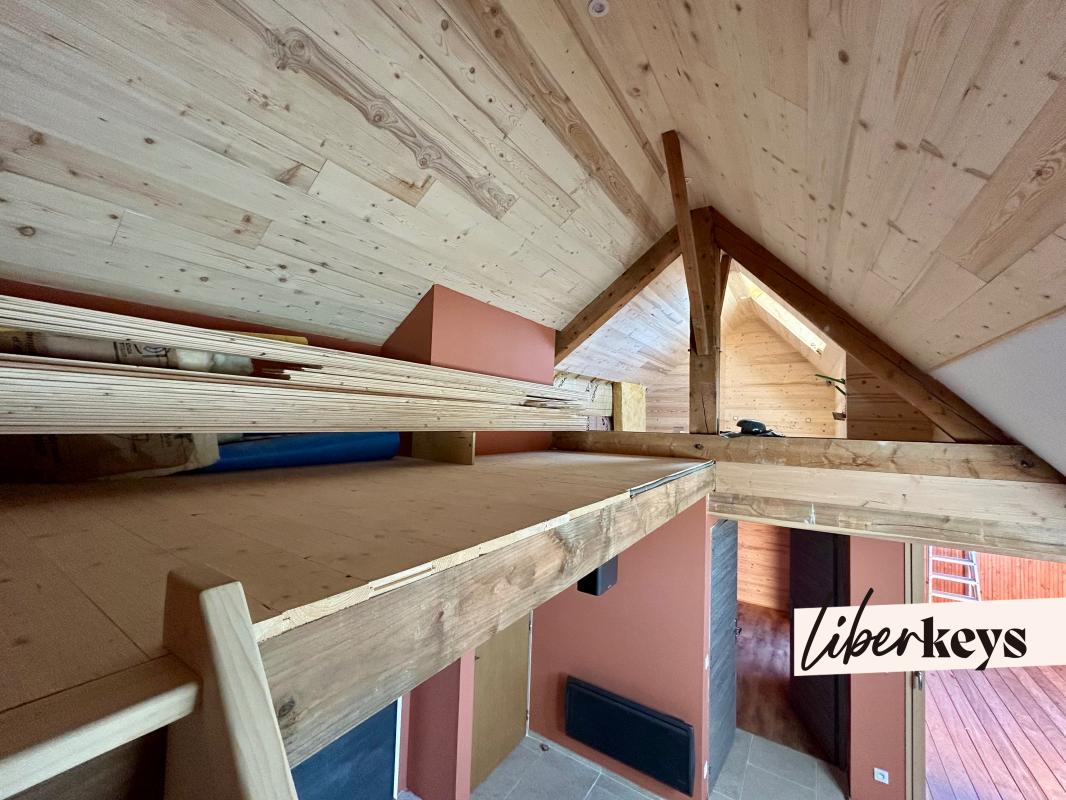 Une mezzanine de 15 m² vient compléter cet espace, où vous pouvez imaginer une deuxième chambre, un bureau ou bien encore une salle de jeux pour les enfants.