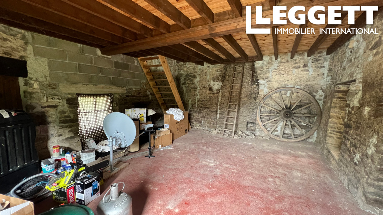 A24065VIC14 - Un côté des propriétés mitoyennes a déjà été rénové, offrant un espace de vie au rez-de-chaussée avec une cheminée en granit et 3 chambres au premier et au deuxième étage. La maison ancienne restante devra être entièrement rénovée. De l'autre côté du chemin, il y a également un grand bâtiment en pierre mitoyen d'un côté, parfait pour un garage ou un atelier.