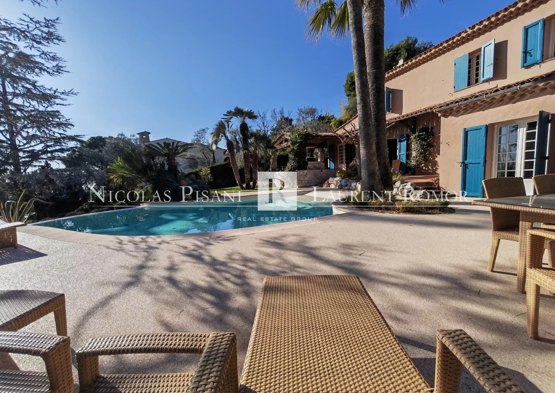 Dans un domaine fermé et sécurisé, sur les hauteurs de Villefranche sur mer, belle villa provençale avec piscine.