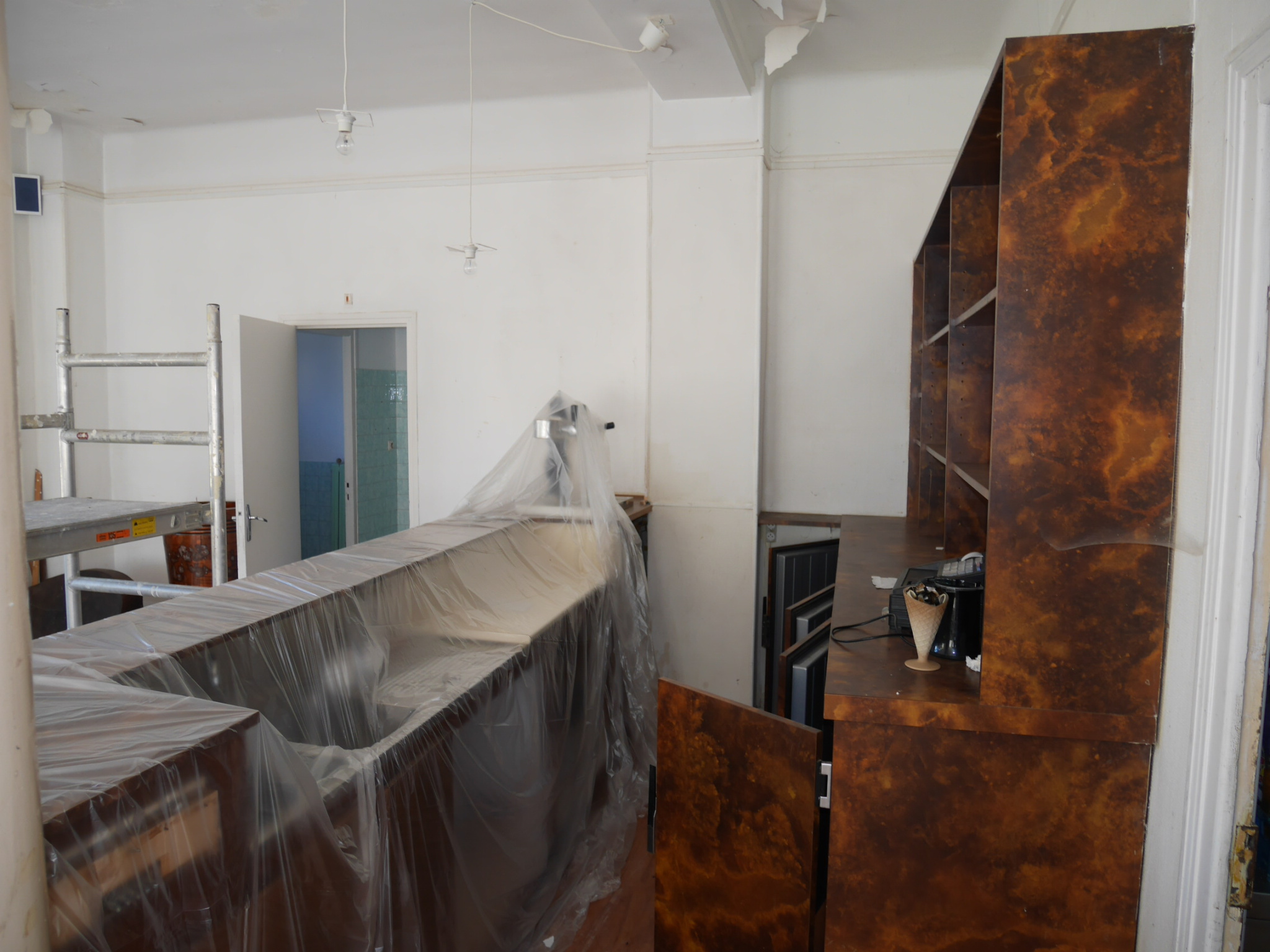 Rez de chaussée élevé partie sur cave , comprenant : une salle de bar et une salle de restauration ensemble 75m2, Cuisine de 21m2. Deux W.C, partie privative comprenant trois pièces (dont une ancienne buanderie)