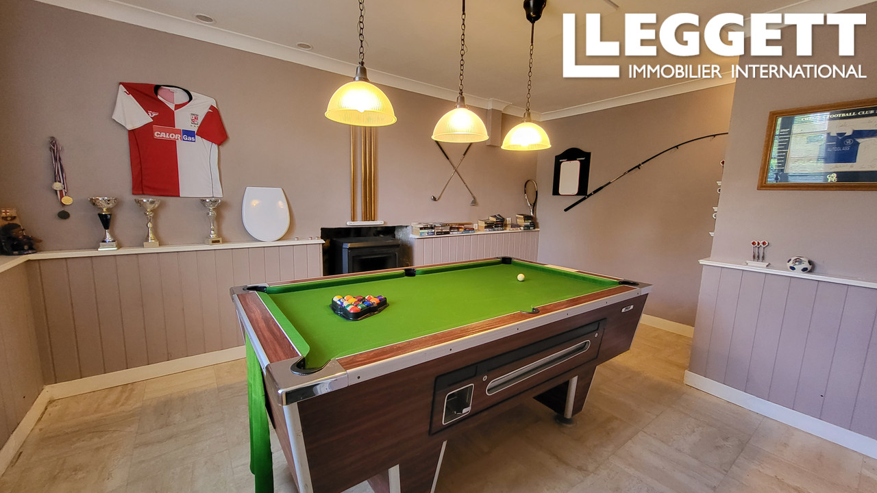 Au rez-de-chaussée: entrée, salle à manger/séjour, salle de jeux, pièce, bureau, débarras, deux chambres, salle d'eau avec WC, buanderie, WC, pièce., véranda à l'arrière.