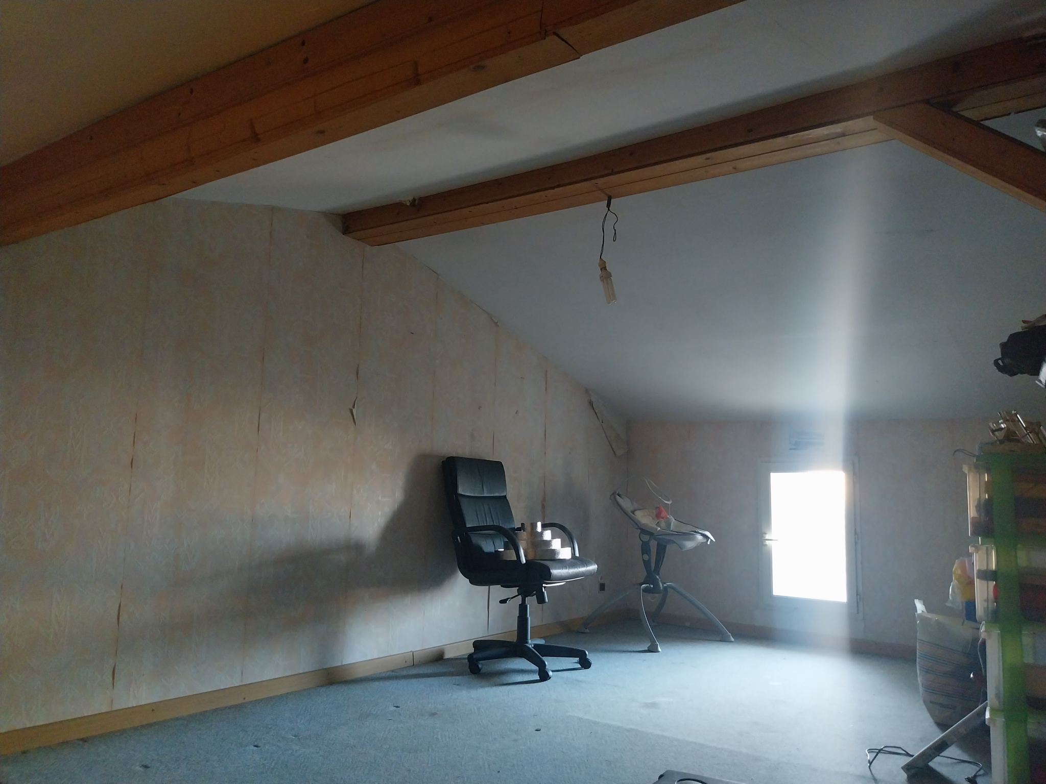 A l'étage deux pièces mansardés pouvant être facilement transformable en deux chambres ou suite parentale, combles aménageables.