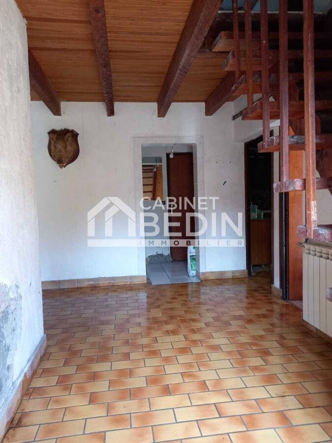 SAINTE EULALIE EN BORN. Maison mitoyenne de caractère sur terrain arboré de 2000 m² composée d'une grande pièce de vie,cuisine,3 chambres dont une en rez de chaussée,salle d'eau,mezzanine, terrasse et dépendance.