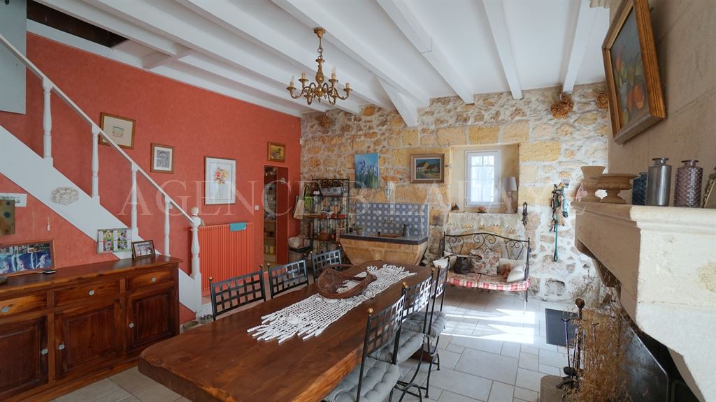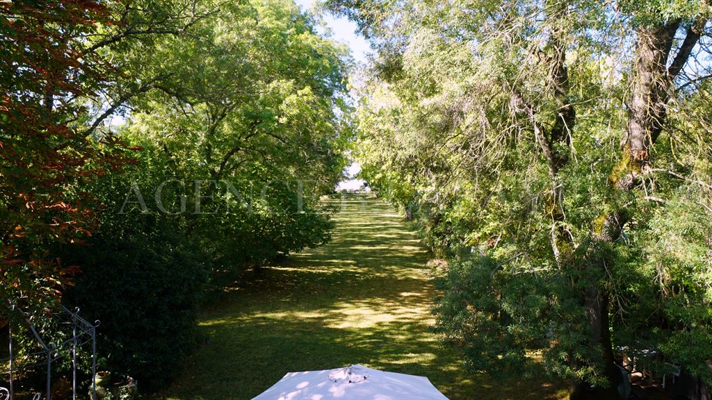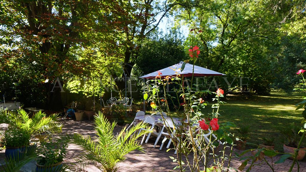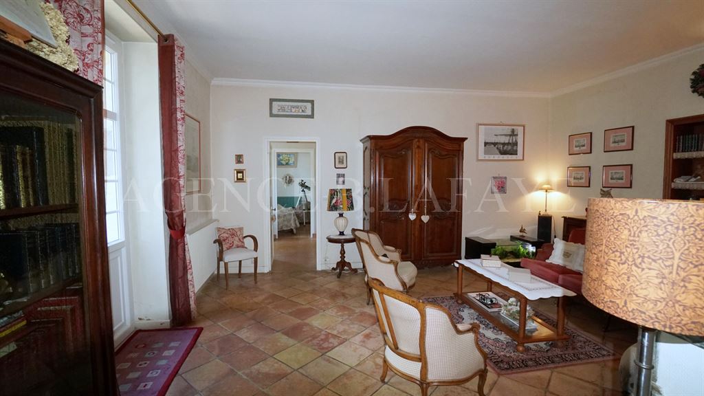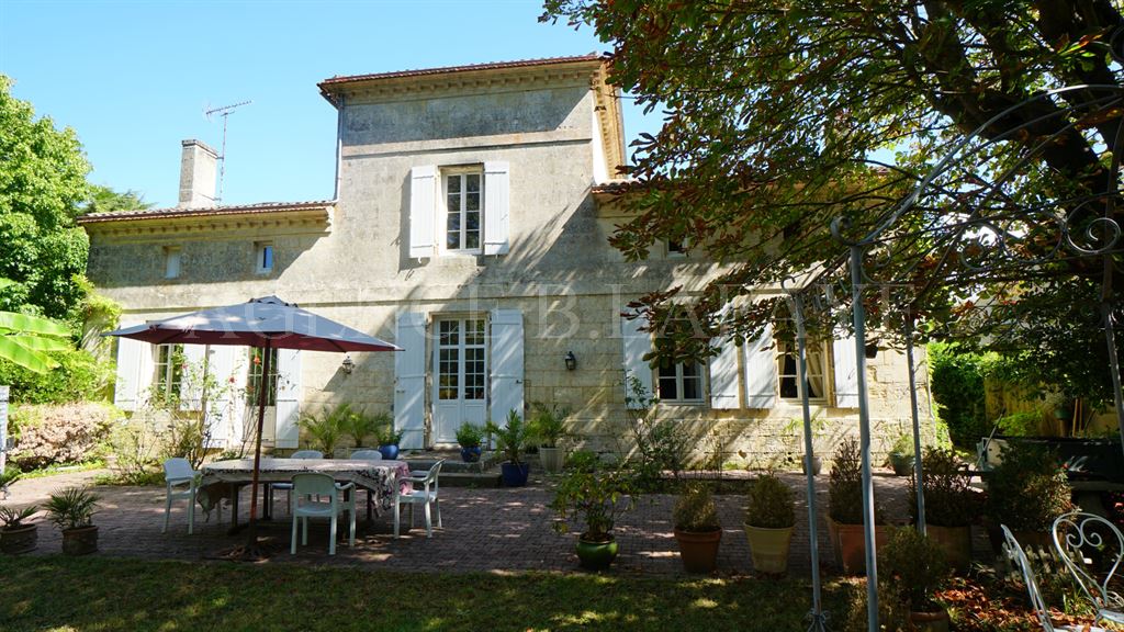 L’Agence B. LAFAYE vous propose à la vente en exclusivité cette véritable chartreuse du début du XIXème siècle avec corps central surélevé (1827) en bon état comprenant au rez-de-chaussée, un hall d’entrée, grand salon avec cheminée et sol en terre de Gironde, petit salon avec cheminée, beau séjour avec cheminée pierre et potager, cuisine très bien aménagée et équipée, office, lingerie, wc, chambre ; au 1er étage, bureau, 4 chambres, salle de bains, salle d’eau, wc, nombreux rangements. Beau parc de 4 000 m² complanté d’arbres centenaires. Garage, atelier, abri de jardin, large terrasse. Beaucoup de charme et d’authenticité pour ce bien de campagne.