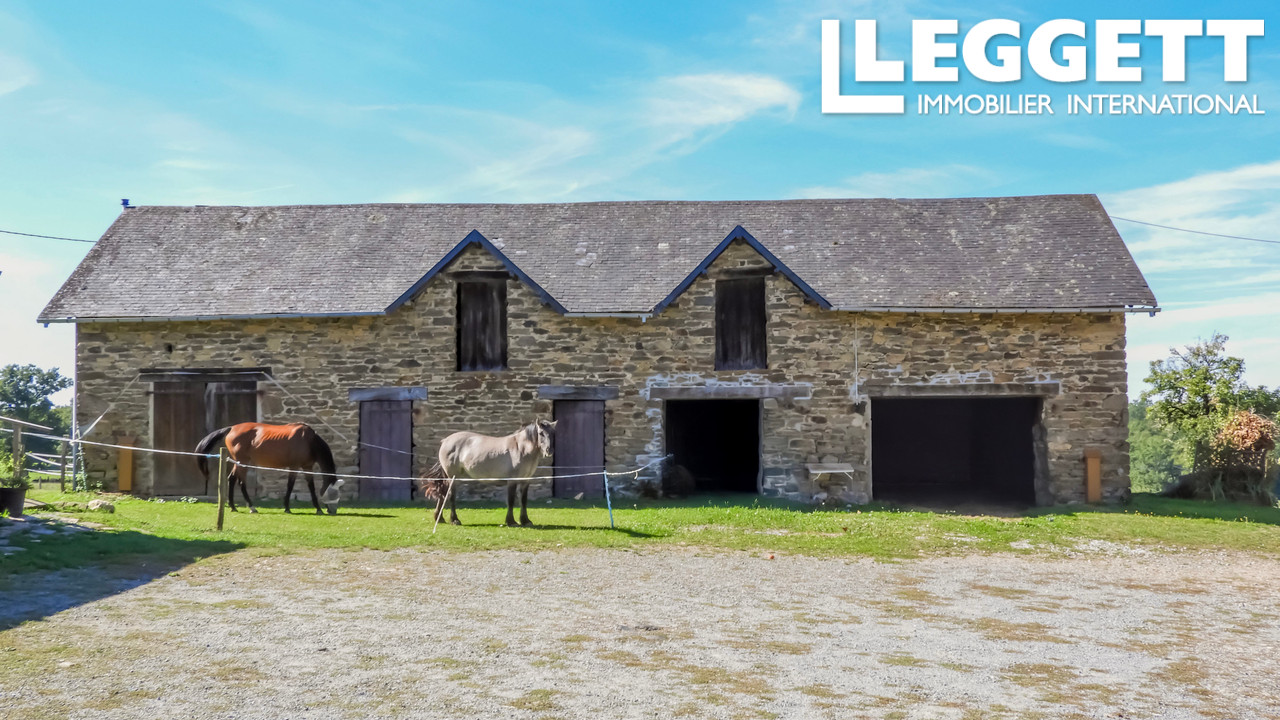 À l'extérieur : trois grandes granges avec 4 boxes, 2,5 hectares de prairie. Hangar/garage ouvert avec possibilité de maison d'amis et un four à pain. Carrière -clôturé et drainé- à l'arrière avec piscine