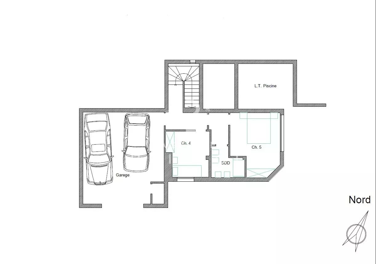 Au rez-de-chaussée : une chambre, douche, un bureau ou