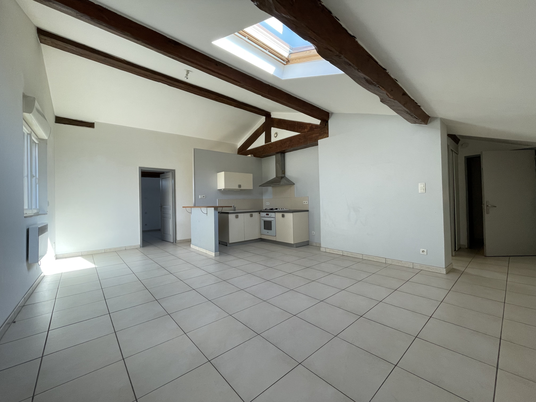 Le premier appartement est de type T3 d'une superficie de 60m2. Il est composé d'un salon-séjour, d'une cuisine ouverte, de 2 chambres et d'une salle d'Eau. Il est équipé de double vitrage, de volets électriques et d'un Chauffage électrique. Il est complété par un garage indépendant en rez-de-chaussée.